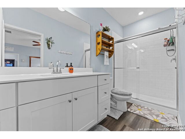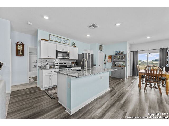 Welcome to 14359 Elkhorn Crst, a thoughtfully upgraded single-story home located in the desirable Trails at Culebra community. This inviting 3-bedroom, 2-bath residence offers a seamless blend of comfort and style, featuring modern touches throughout. Step inside to find a light-filled open layout, highlighted by a beautifully enhanced kitchen with a stylish backsplash, perfect for both everyday living and entertaining. The upgraded tiled shower adds a touch of luxury to the primary suite, while an enhanced closet and a customized laundry room provide added function and flair. Enjoy access to exceptional neighborhood amenities, including a community pool, park, and playground-ideal for relaxing or enjoying the outdoors. Conveniently situated with easy access to local dining, shopping, and major roadways, this home offers a modern, low-maintenance lifestyle in a vibrant and welcoming community.