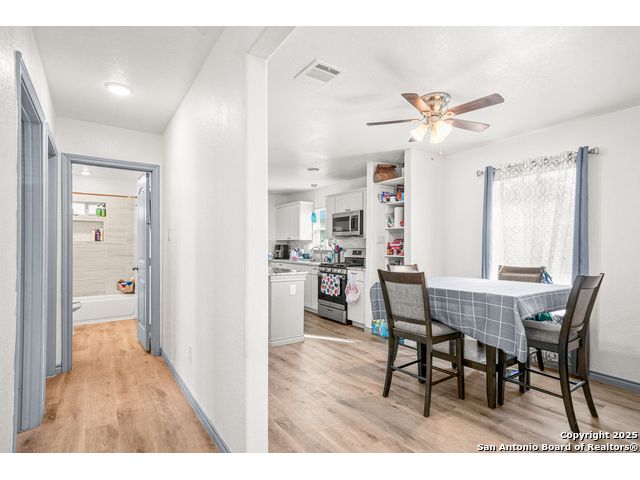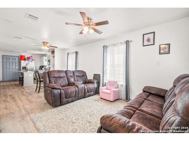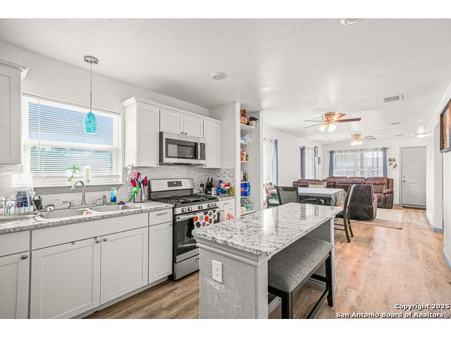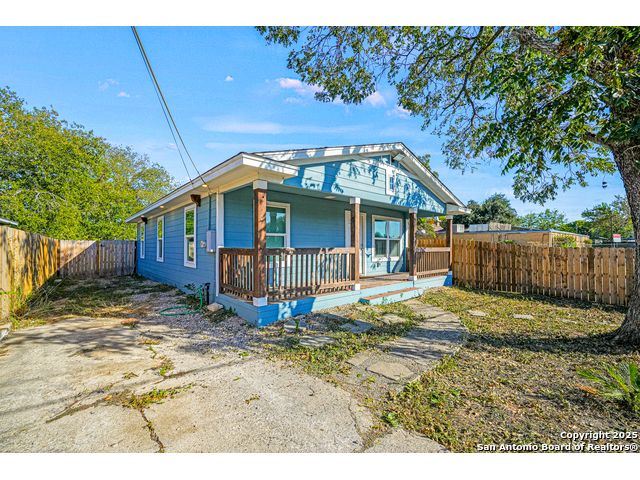 This beautifully renovated 3 bedroom 1 bath home offers an open concept design with hard floors throughout and a bright, comfortable feel. The kitchen features granite countertops and connects easily to the living and dining areas, creating a practical layout for everyday living. Both the front and back covered patios provide relaxing outdoor spaces, and the backyard includes a shed with running water and electricity that can be used as additional living quarters. Enjoy convenient access to Hwy 90, Loop 410, Hwy 151, Lackland AFB, and SeaWorld.