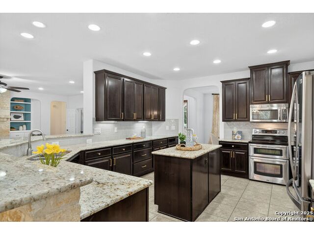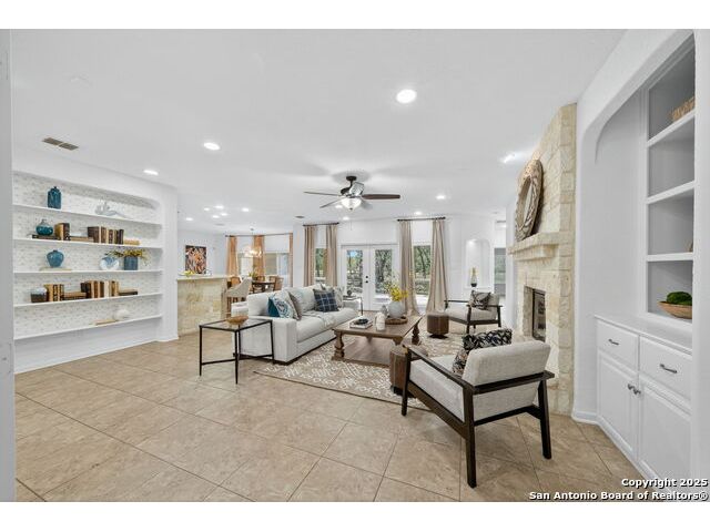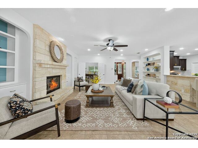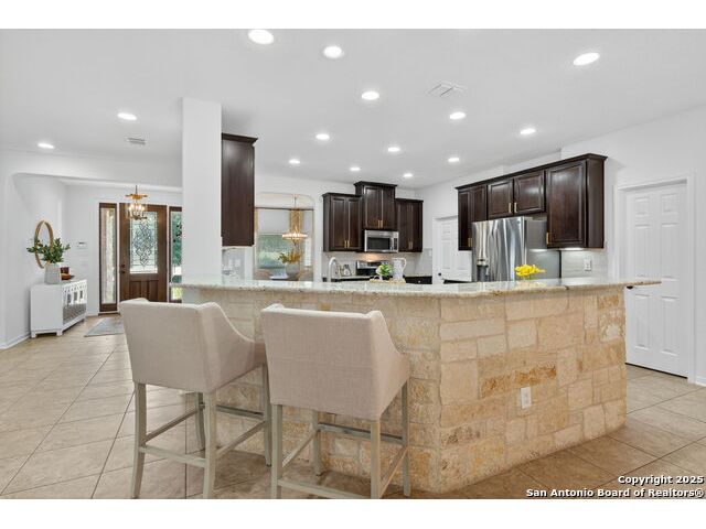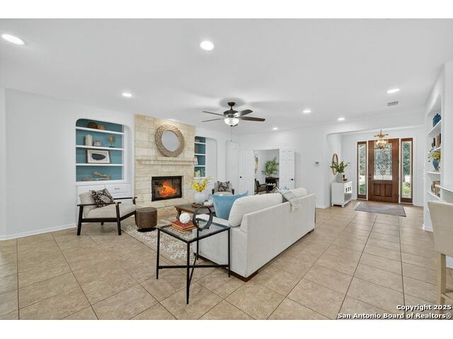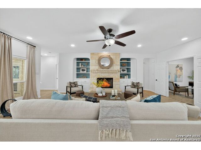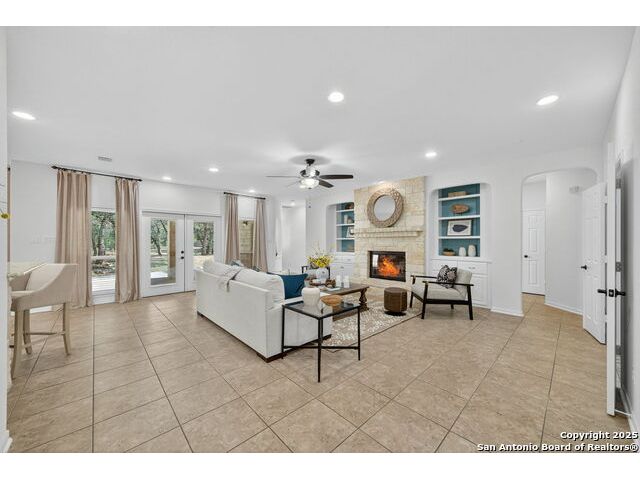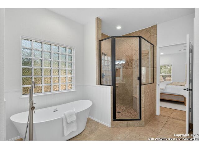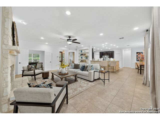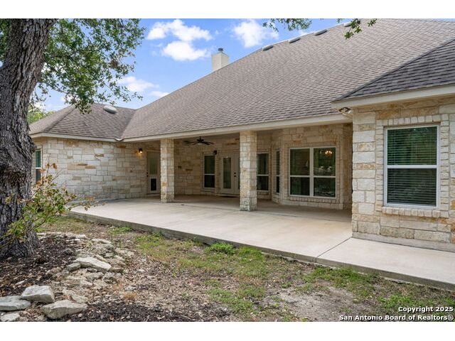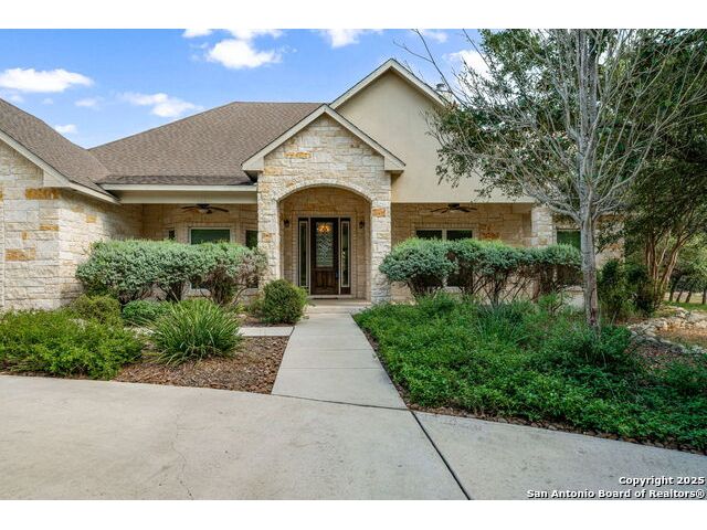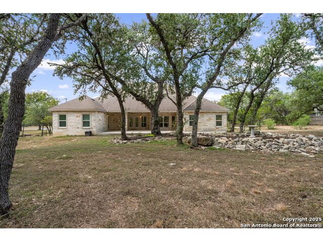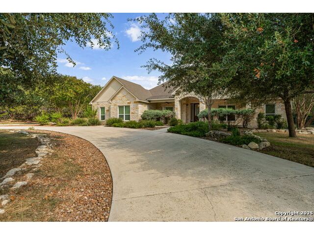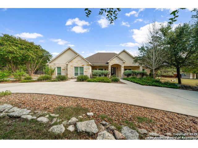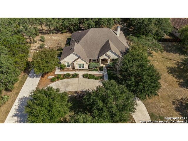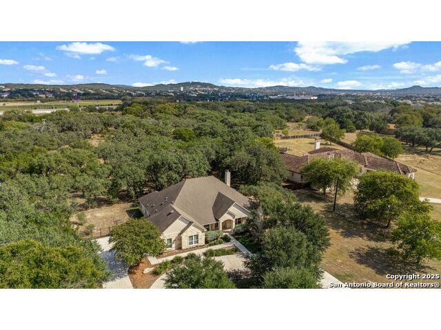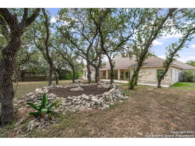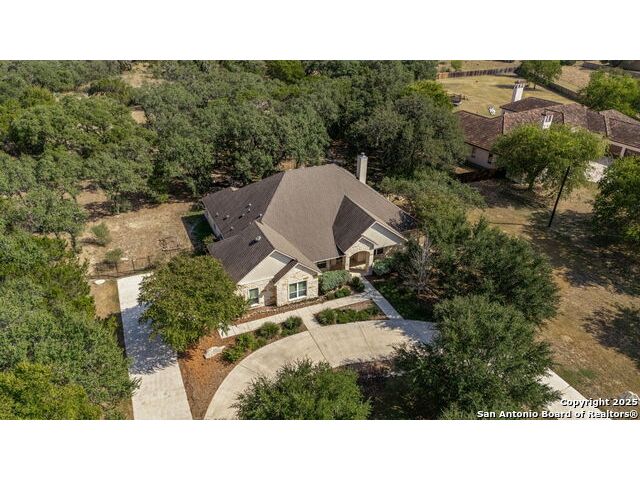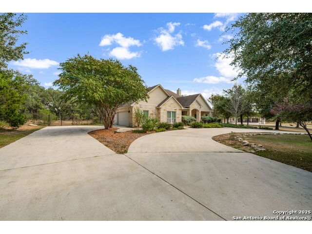 RARE FIND! Hurry out to see this charming and thoughtfully updated custom single-story home in the desirable, gated and GUARDED community of Scenic Oaks. This lot is larger than usual offering 1.77-acres of heavily treed, level property with great spaces for a pool, mother-in-law/guest house or large barn/garage for RV, boats, etc. The house is set back from the road so to enjoy the large circular drive - abundant parking for all your family and friends when they visit - and lush landscaping! Step inside the wide entry and note the open floorplan with large great room open to the spacious kitchen. New light fixtures, paint, backsplash and pulls feel just like a brand-new home. Any cook will surely enjoy the miles of countertops and plentiful cabinets along with the spacious breakfast bar at which friends will gather. The utility room is just off the kitchen with the same quality cabinets, a sink and room for an extra fridge or freezer. The office has been updated with a closet for electrical equipment or for use as a 5th bedroom. You'll love the split floor plan with the grand primary bedroom with outside access on the left side accompanied by an updated spa bath with stand-alone soaking tub, large shower and ample closet. The three other bedrooms are on the right side of the house - one with its own bath and the other two with roomy Jack and Jill facilities. The upgrades include an electric vehicle charger in the large, side-load garage; updated electrical panel; updated plumbing with shut off valve with a backflow preventer and a freeze sensor; newer water heater and softener and custom draperies. See upgrade list for all the thoughtful upgrades. The East-facing rear covered patio is large enough for both a living and dining area. It is extended for greater utility. The backyard potential is virtually unlimited for any extras you desire and offers dozens of oaks - trimmed with all brush removed. This IS refined country living with all the city conveniences. Scenic Oaks residents enjoy and appreciate guarded access, a lovely clubhouse, and a strong sense of community. Just minutes from La Cantera, The Rim, Six Flags, The Rock, UTSA, USAA and downtown Boerne. HURRY OVER!