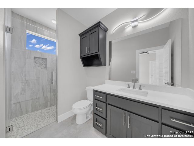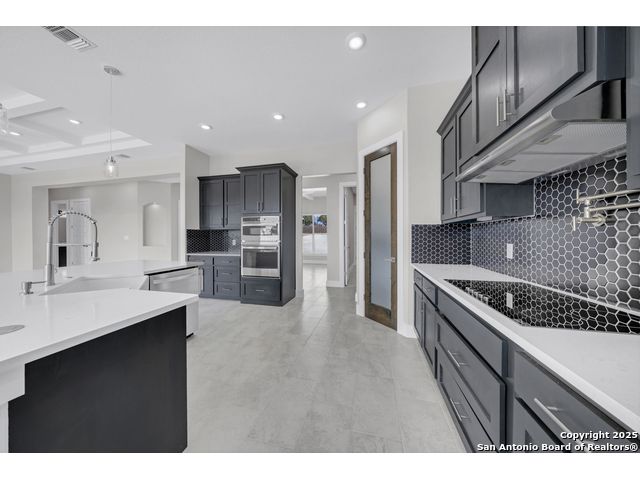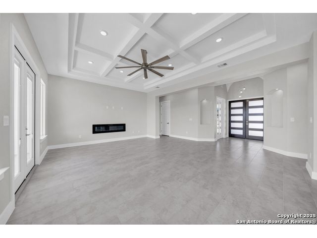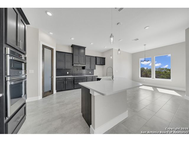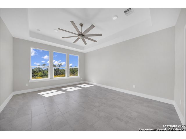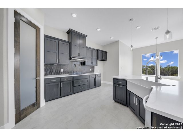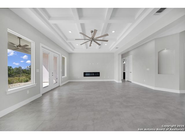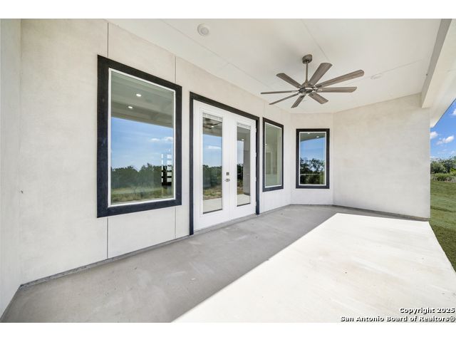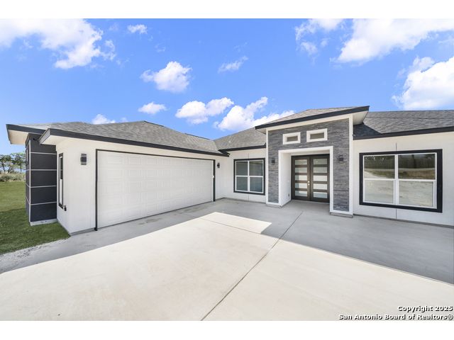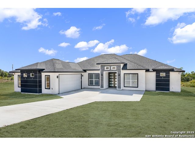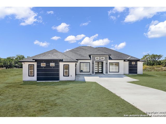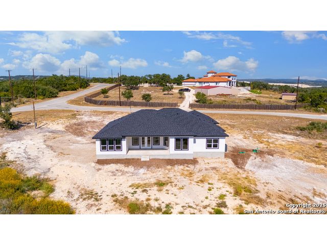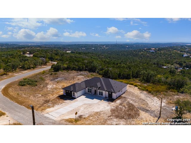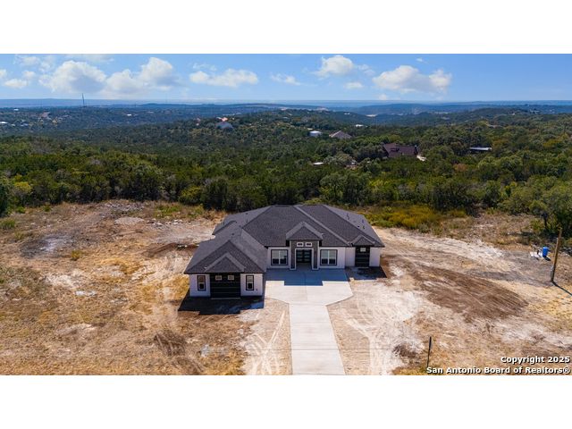 Experience tranquility and stunning panoramic Hill Country views while still being just minutes from everything! This brand-new custom-built single-story home sits on 2 beautiful acres and offers 2,610 sq ft of contemporary elegance. Featuring a sleek stucco exterior, 3 spacious bedrooms, 3.5 luxurious baths, and a dedicated study/office, this home is designed for both comfort and style. Enjoy the open-concept floor plan with soaring ceilings, a bright and airy living space with an in-wall fireplace, and expansive windows that capture the views. The gourmet kitchen includes a large breakfast island, farmhouse sink, custom cabinetry, stainless steel appliances, and electric cooking. The dining area is perfect for gatherings and entertaining. The primary suite is a true retreat with a spa-inspired bath, walk-in shower, and generous closet space. Step outside to a large covered patio where you can unwind and take in the breathtaking scenery. An oversized two-car garage adds convenience and storage. Come see this incredible property today - where luxury living meets peaceful Hill Country charm!