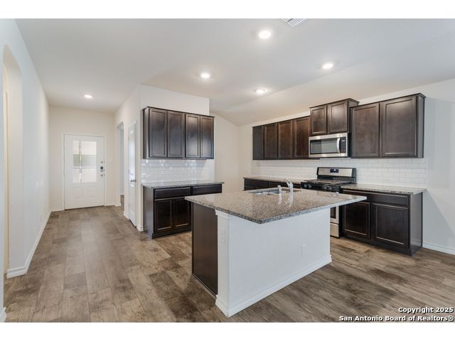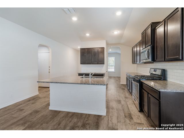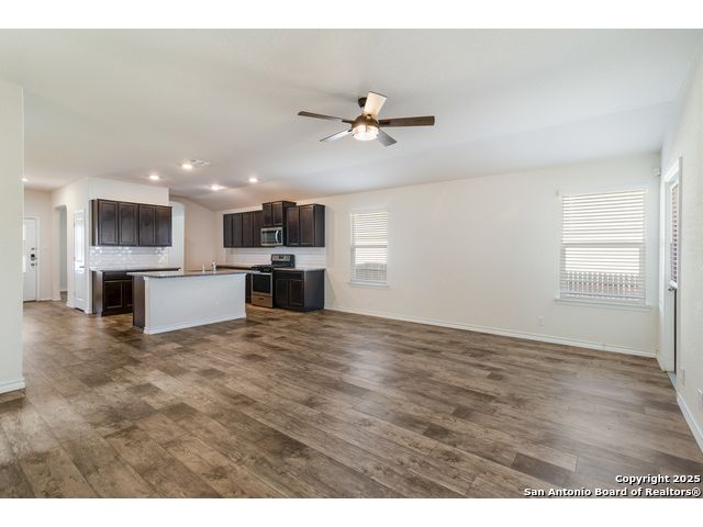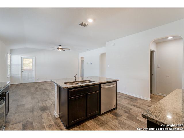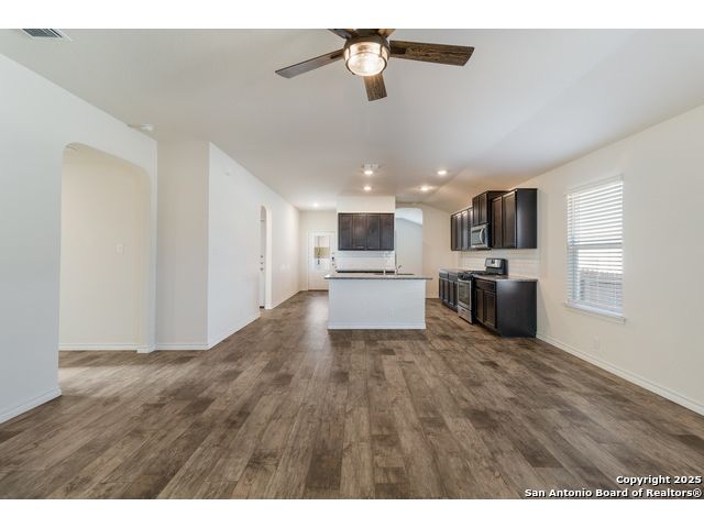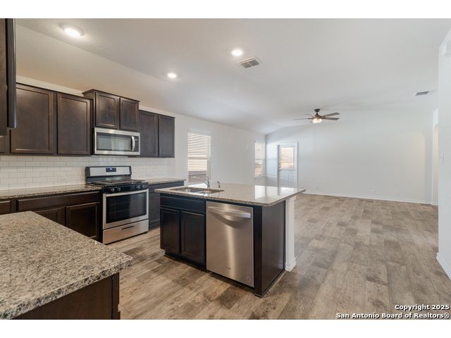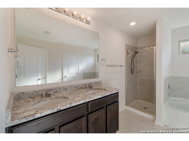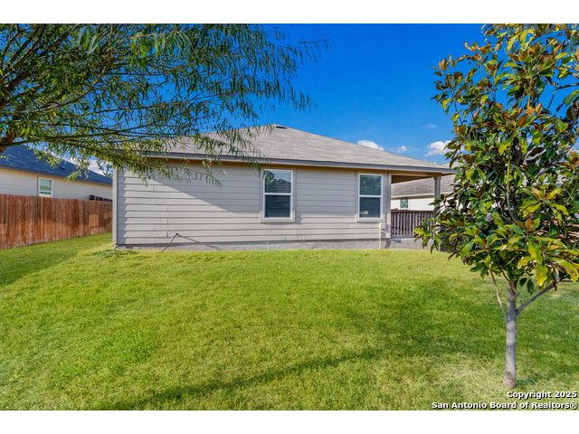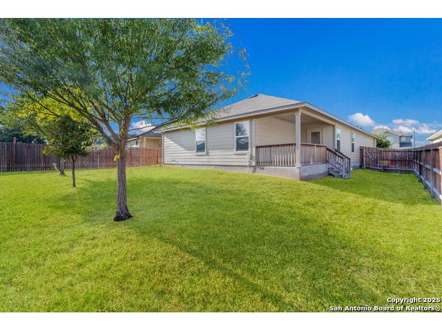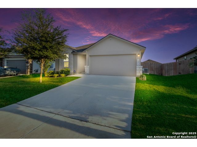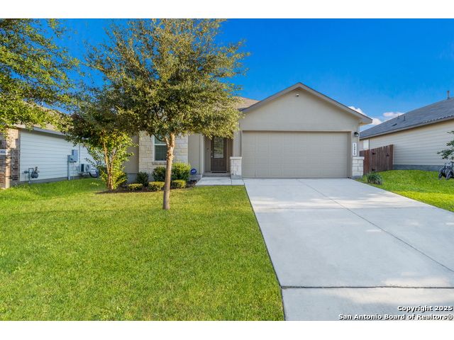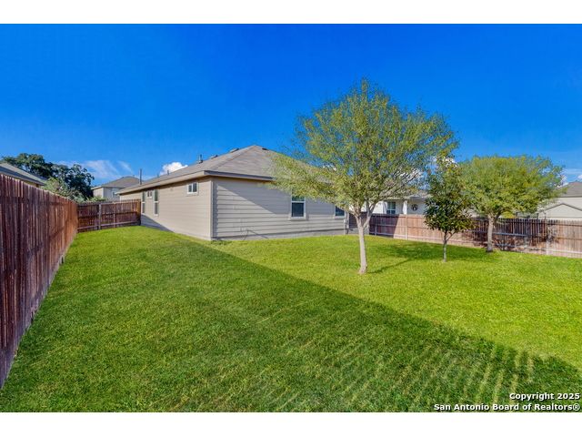 WELCOME HOME TO REDBIRD RANCH! Discover modern living at this beautiful 3-bedroom, 2-bathroom open-concept home featuring soaring high ceilings and an incredible opportunity for a VA Loan Assumption. The main living area flows seamlessly into the gourmet kitchen, which boasts rich dark brown cabinetry, matching appliances, a massive eat-in island, and an adjacent formal dining room with an archway entry. Retreat to the spacious primary suite, complete with an oversized walk-in closet and a luxurious master bath featuring a double vanity, separate shower, and soaking tub. Outside, entertain effortlessly on the covered patio in the large, private, fenced backyard, or enjoy the resort-style community amenities including pools, a fitness center, sports courts, and scenic trails. Located in the desirable Redbird Ranch subdivision, you'll have quick access to Loop 1604, extensive shopping, and dining.