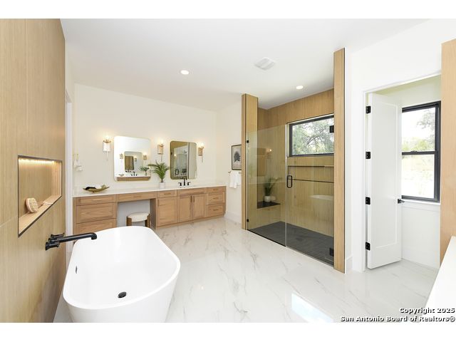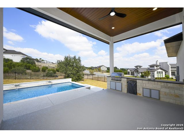 Built by Vena Homes. Come see this custom new home just completed in the Canyons at Scenic Loop. This modern home features high end finishes such as custom white oak cabinets, paneled Jenn-air appliances, quartz waterfall islands, hidden butlers pantry, a huge master suite with his and hers closets and a safe room. The floor plan features an open concept with a 4 bedrooms each with their own full bath, the master has a direct walk out access to the heated pool and hot tub. Full kitchen and large patio with fenced in yard as well awaits you in the backyard on this flat lot.