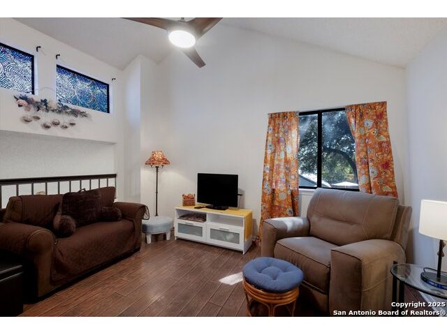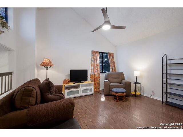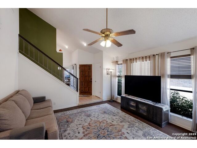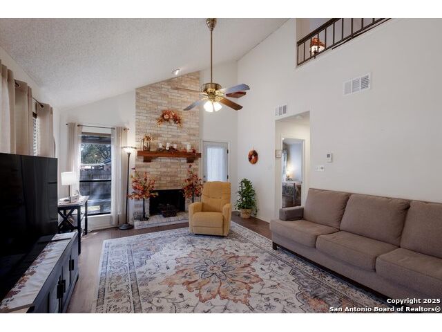 Welcome to this warm and inviting 3 bedroom, 2 bath home located in this popular San Antonio area. High vaulted ceilings give this 1563 square feet home the advantage! Spacious family room with fireplace is a cozy area to relax. Eat in kitchen or use bright dining room for entertaining or family meal time! Master bedroom is located on the main level - good size and no stairs! Two additional bedrooms up - one with closet is currently featured like a loft and overlooks the family room. The other bedroom is bright and airy and offers plenty of room. Closet space galore! 2 car garage is ample space for storing cars, and lawn equipment. Accessible to everything, major highways, schools, medical, shops and restaurants. Close to military bases and universities. Come in for a preview!