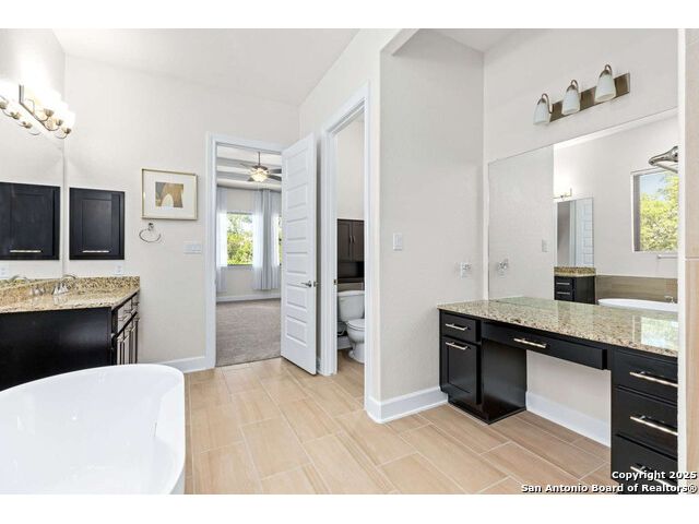 Welcome to the prestigious gated community of Bent Tree in Boerne, Texas! This modern 5,202 SF two-story home is nestled on a 1-acre lot & is LARGEST floor plan offered in this community. The main house features 4 bedrooms, 3.5 baths, and a study (6th bedroom). The master bedroom is on the main floor while 3 secondary bedrooms & game room are situated upstairs. As you step through the grand entry, you'll be greeted by an impressive two-story foyer that showcases a dramatic curved staircase and living room. The heart of the home boasts a gathering room w/soaring high ceilings and a spacious kitchen. The kitchen has a large island, ample counter & storage spaces and built-in SS appliances. Separate from the main house is a private, detached Casita. This separate home has a living room, full kitchen, full bath, and bedroom. The porte-cochere between the house and Casita, along with the motor court and 3-car garage adds an extra layer of sophistication to the exterior. Installed 220V outlet for your EV vehicles. Outback, you'll find a covered patio, a beautiful deck, and mature oak trees. There is a separate dedicated electrical panel for your future dream pool! With its impeccable design & upscale finishes, this home is a must see!