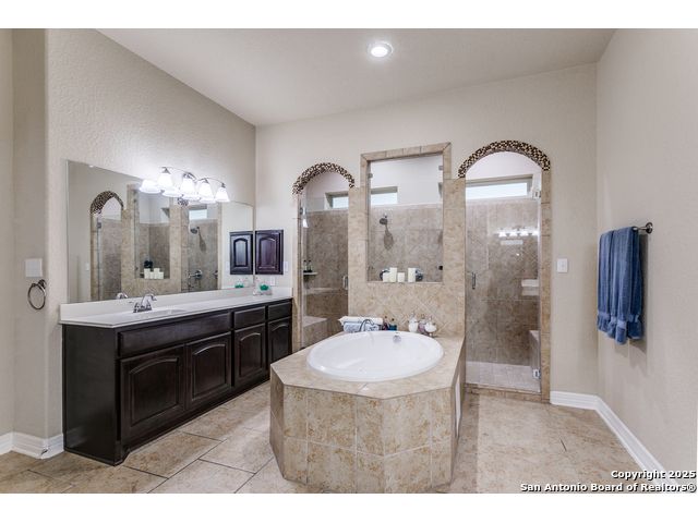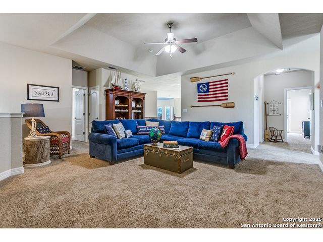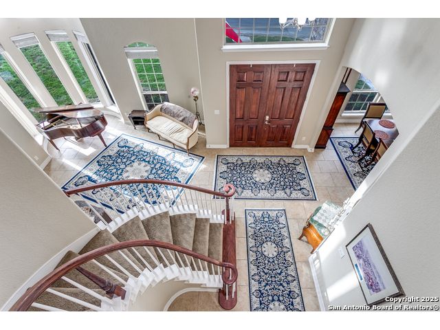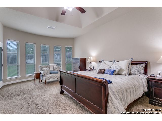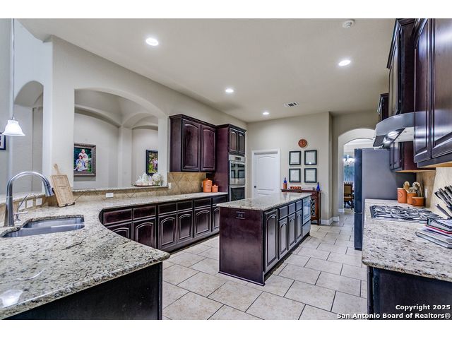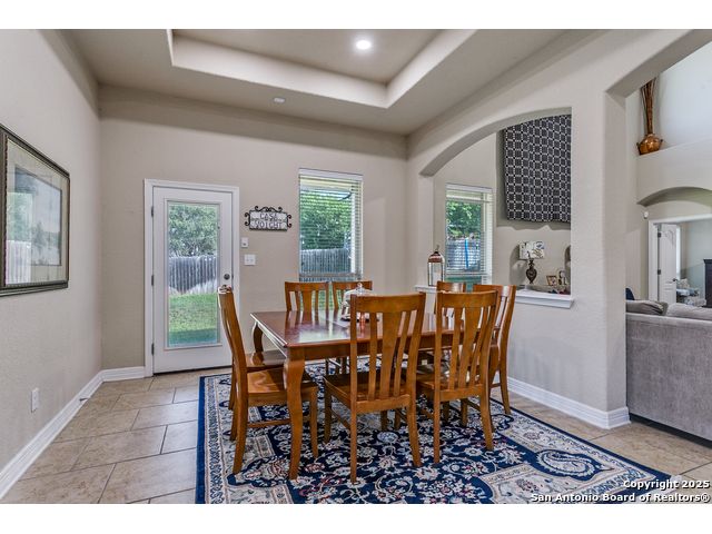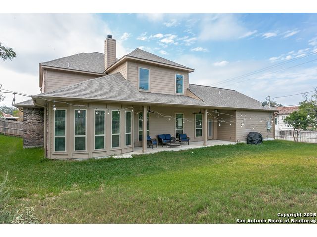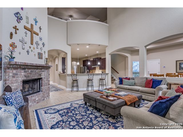 Open House 12/7! 2-4pm. Discover elevated living in this beautifully crafted 5 bedroom, 4 bath home, gracefully situated on a corner lot with mature trees & a spacious 3 car garage. Thoughtfully designed for both comfort & sophistication, this home offers 4 living areas, including a turret style living room, 2 family rooms & a sizable game/media room. The addition of multiple dining areas makes this home an entertainer's dream. The luxurious primary suite features high ceilings, dual walk-in closets & a spa-inspired en-suite bath. A downstairs secondary bedroom with a full bath is an idea retreat for guests, in-laws, or a home office. At the heart of the home, the gourmet kitchen showcases granite counters, stainless steel appliances, double ovens, a walk-in pantry & abundant cabinet space. The adjacent family room invites relaxation with a cozy fireplace & views of the serene backyard. Step outside to a covered patio perfect for alfresco dining & quiet mornings. This exceptional home blends timeless design with modern amenities - an extraordinary opportunity for those seeking space, style & sophistication.