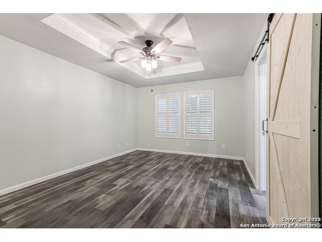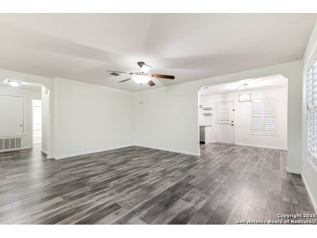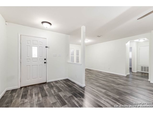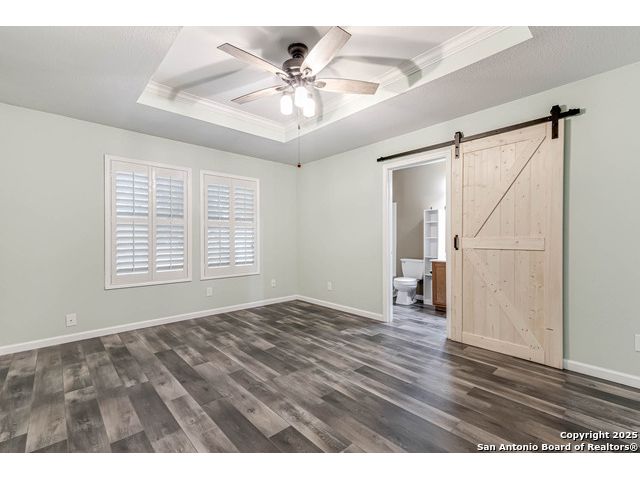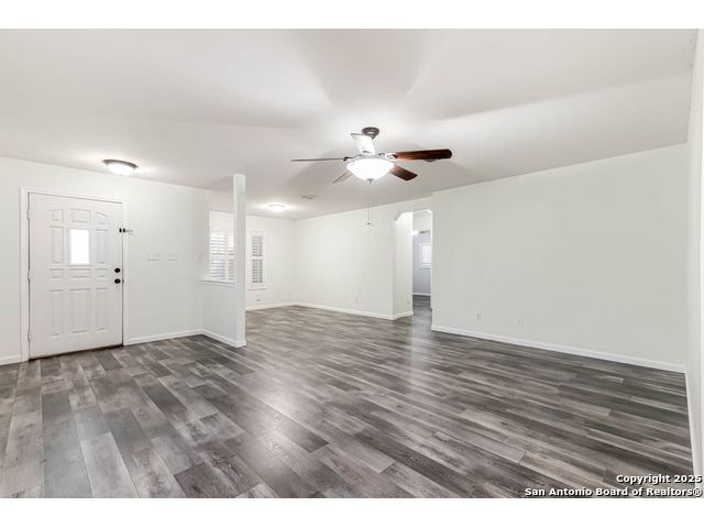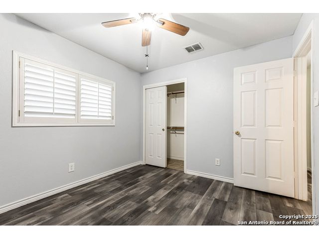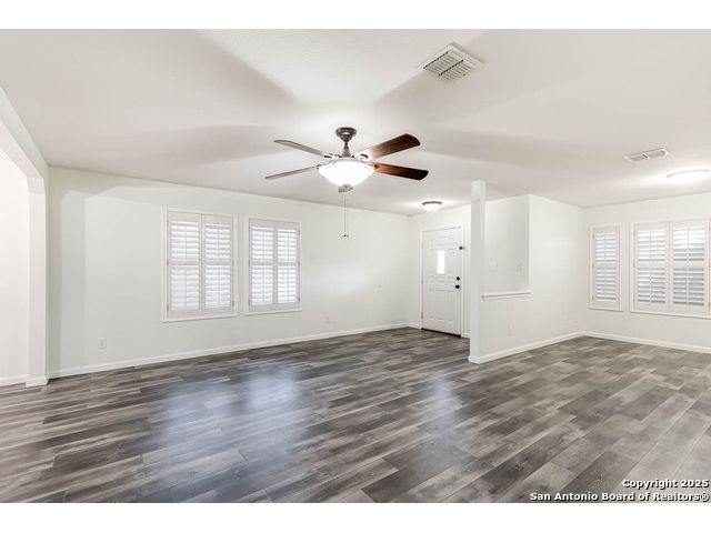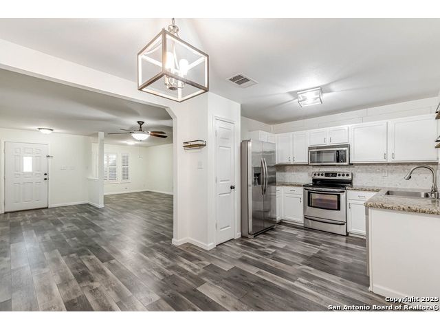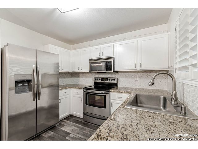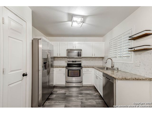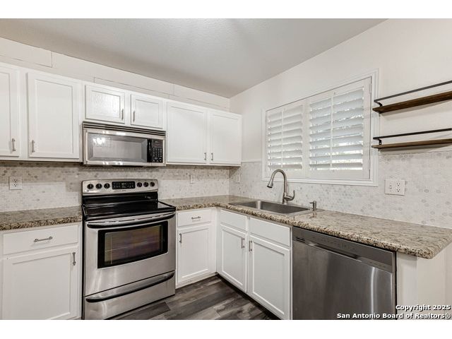 This home offers the perfect combination of an updated interior and spacious front/back yards with greenbelts on 2 sides in the desirable Bulverde Creek neighborhood. Tasteful choices everywhere inside including plantation shutters, contemporary laminate floors, elevated kitchen with granite counters, white cabinets, modern backsplash. Fresh paint, newly installed barn door in primary bedroom. Well maintained and move in ready.