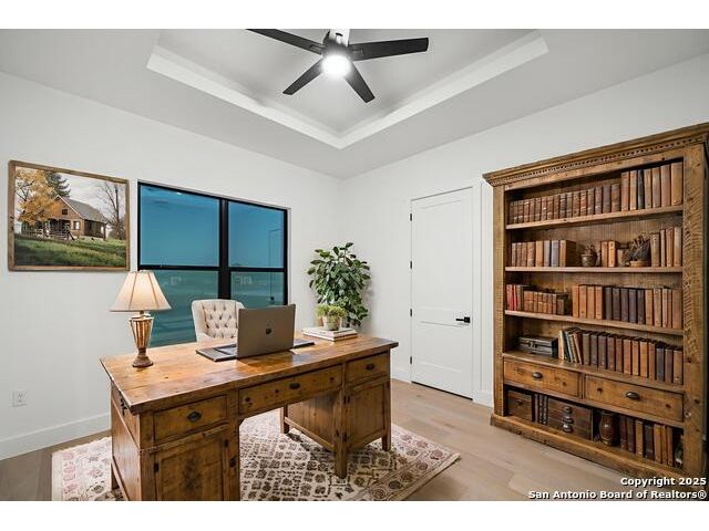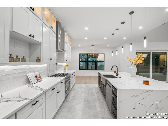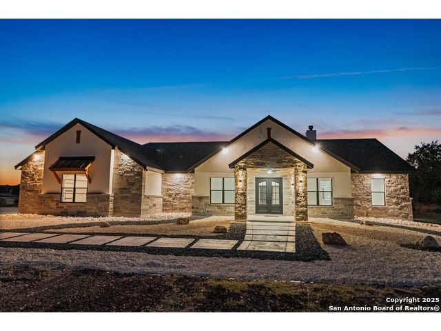Luxury Hill Country Living in a Premier Gated Community. Experience the beauty of Hill Country luxury on 2.1 acres with this stunning custom-built single-story home offering approximately 3,000 sq. ft. of modern elegance, 4 bedrooms (2 primary suites), 3.5 baths, a dedicated office or a potential 5th bedroom, spacious laundry room and 3-car garage blending spacious living with refined comfort. Step inside to soaring ceilings, an elegant fireplace and seamless flow into the dining area and chef-inspired kitchen. The kitchen features a breathtaking quartz waterfall-edge island, ceramic backsplash, custom cabinetry, gas stove, pot filler, spacious walk-in pantry and stainless-steel appliances, a true culinary showcase. Tall sliding patio doors open to an expansive covered patio for year-round outdoor enjoyment, offering the perfect setting to relax or entertain under the Texas sky. With 2.1 acres, there is ample space to personalize your outdoor vision - whether that includes a custom pool, RV parking, guest house, workshop, or barn for your horses. The community offers a guest house for your extra guests,2 amenity centers, 2 Swimming Pools, 2 Tennis Courts, basketball court, Gym, horse arena, park/playground, Soccer field, baseball field, volleyball net, Picnic area for BBQ with restrooms. This exceptional residence in Bandera known as Cowboy Country offers style, function, and timeless Hill Country living at its finest just 20 minutes from Shopping, Dinning, Medical, and 45 minutes from San Antonio. Come see it today!