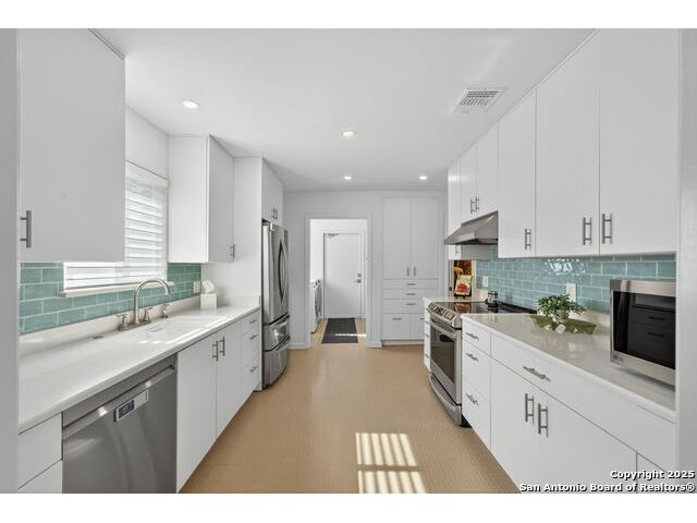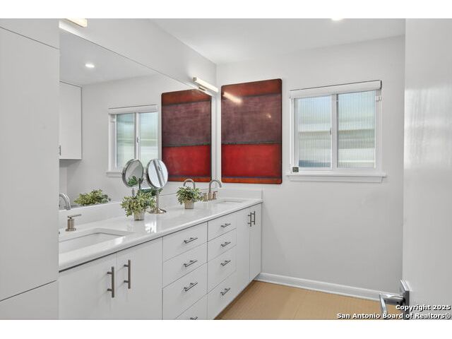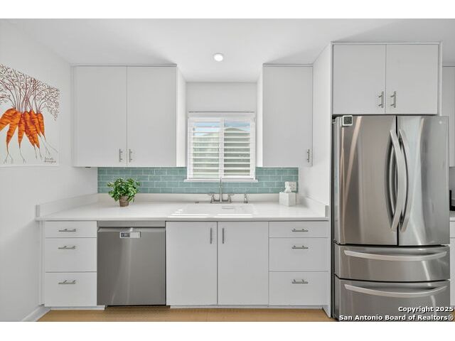 OPEN HOUSE SUNDAY 11/30, 2-4pm Fully remodeled in 2021, and lightly lived in since, this exceptional home combines modern comfort with thoughtful design. The main living areas and primary bedroom and bath have all been thoughtfully reconfigured to be ADA-compliant, offering accessibility without sacrificing style. The extensive array of custom built-ins in the Brkfst, Liv/Din room, and Primary BR) as well as cabinetry (with pull out shelving) adds both elegance and practical storage throughout. The home features newer electrical, plumbing, windows, doors, flooring, hvac, and appliances, with the refrigerator, washer, and dryer conveying. It is also equipped with a security alarm system, to include multiple surveillance cameras, providing added peace of mind. All components of this security system also convey with the sale. Outside, the backyard has been transformed into a stunning rain garden by an Ecosystems Regeneration Artisan, showcasing native plants that enhance beauty while promoting effective drainage. The front yard is equally inviting, with multiple large, mature trees and native plant landscaping creating a serene, natural setting. With so many thoughtful upgrades throughout, this home is a must-see! Centrally located in the prestigious City of Castle Hills, this home is convenient to all major highways, the airport, downtown, restaurants, shopping, and entertainment.