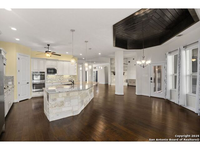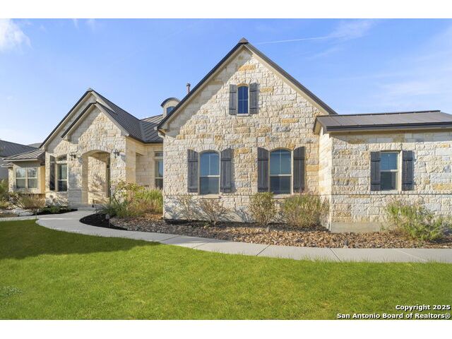 Luxury living in The Canyons at Scenic Loop! This stunning single-story custom built home offers 3,892 sq. ft. of open-concept elegance on a .58-acre corner lot. Featuring 4 spacious bedrooms, 4 full baths, and two living areas, this home blends comfort and sophistication. The gourmet kitchen boasts double ovens, gas cooking, custom cabinetry, and a large island. Enjoy gatherings in the separate dining area or relax by the dual gas fireplaces with enclosed glass screens. The home includes wood flooring, high ceilings, and designer finishes throughout. Exterior highlights include a 4-car garage, circular drive, pergola, gutters, and full sprinkler system. Located in the gated community of The Canyons at Scenic Loop, this home combines privacy, luxury, and convenience within minutes of Boerne, La Cantera, and top NISD schools. Property came back with an appraisal higher than list price! Instant EQUITY!