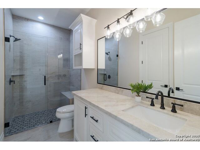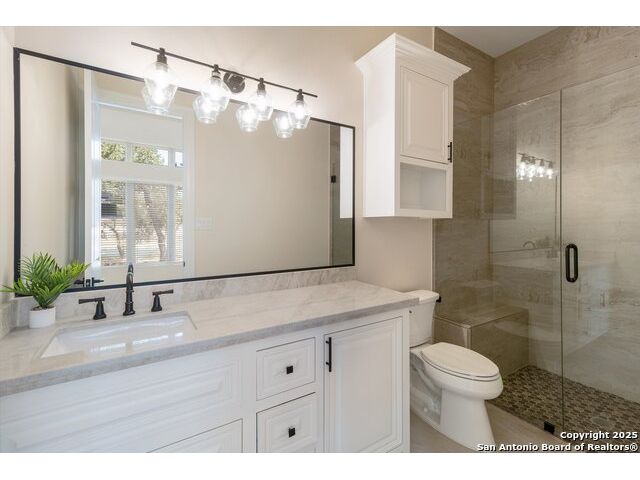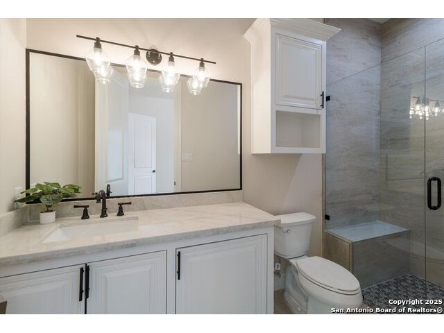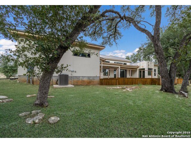 Gorgeous 5-acre lot featuring a home built by the builder himself. This home has never been lived in, and finishing touches will be completed once it's under contract. It boasts four timeless bedrooms, each with its own en-suite bathroom. The one-story layout has no steps, making it easily accessible. The spacious family room, study, and dining area overlook a kitchen designed for the chef, complete with a top-of-the-line gourmet stove range that includes two ovens and an additional two wall ovens, alongside a built-in refrigerator. The pantry features built-in storage that can be customized to your liking-beautiful tiled Dog shower in the garage. The deck provides a perfect spot to enjoy the beautiful outdoor scenery and the presence of mature trees. Outdoor kitchen with huge bar area and half bath off the porch for convenience or for the pool one day. Experience quiet tranquility on this stunning lot, located in the gated neighborhood along Ammann Road. Easy access to Highway 281 allows for convenient travel to the airport, shopping, or schools.