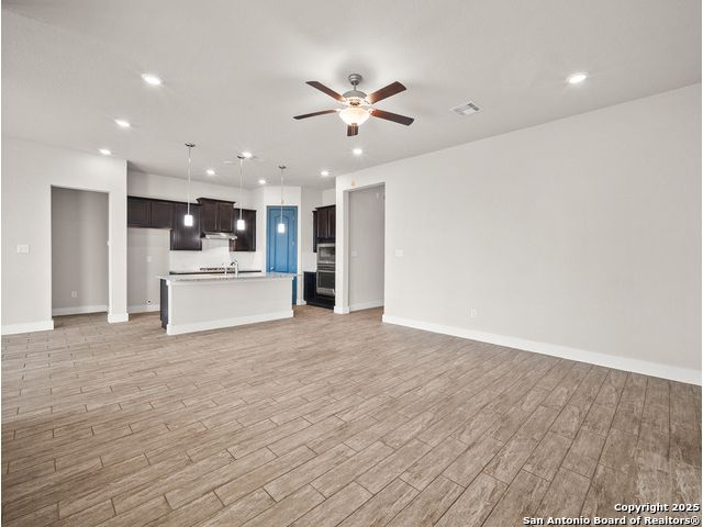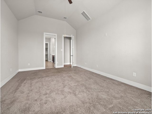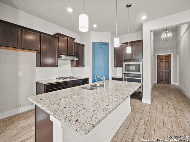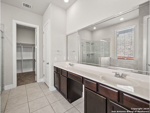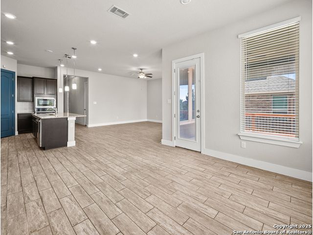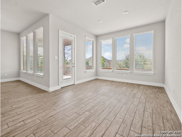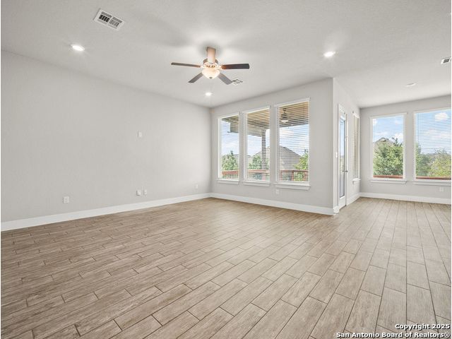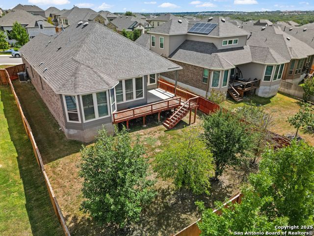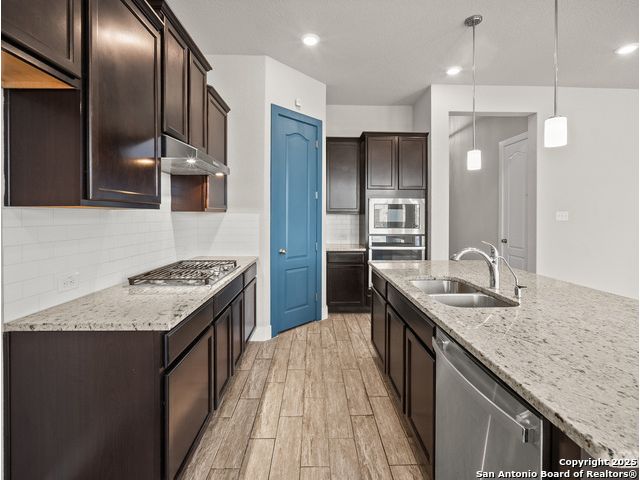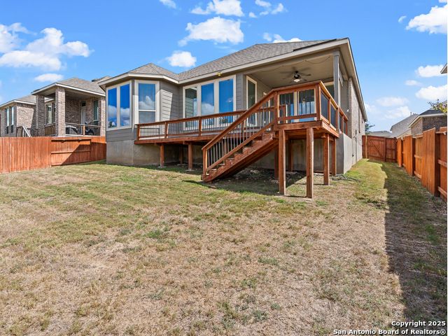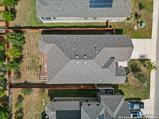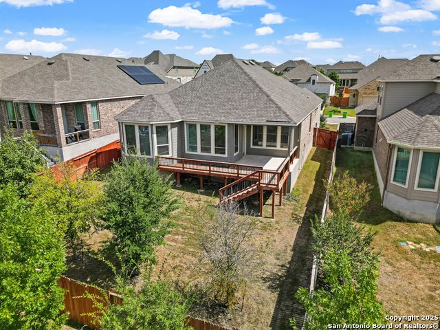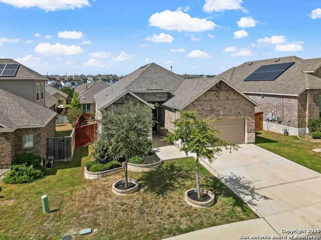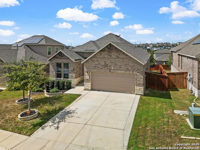 Located in Fronterra at Westpointe, this single-story home combines modern design, open-concept living, and energy-efficient construction in one of San Antonio's most desirable westside communities. The brick and stone exterior opens to a bright, inviting layout with tile-look flooring, high ceilings, and oversized windows that fill the interior with natural light. A dedicated study with French doors provides the perfect space for working from home, creative projects, or a private retreat. The kitchen features granite countertops, a gas cooktop, stainless steel appliances, pendant lighting, and a walk-in pantry. The living and dining areas flow seamlessly together, providing an ideal setup for everyday living and entertaining. The primary suite includes a soaking tub, separate glass shower, dual sinks, and a spacious walk-in closet. Enjoy outdoor living year-round on the covered patio with ceiling fan and extended wooden deck, positioned perfectly for sunset views. The two-car garage offers an epoxy floor, ceiling-mounted storage racks, and a full wall mirror, creating flexibility for a home gym or additional workspace. A Vivint security system adds convenience and peace of mind. Residents of Fronterra at Westpointe have access to a community pool, playground, and clubhouse. Conveniently located approximately one mile from Starbucks, Dutch Bros Coffee, and H-E-B Plus!, and near major employers in the Westover Hills area, this home offers both comfort and accessibility. Quick access to Loop 1604 connects residents to nearby shopping, restaurants, and recreation at Government Canyon State Natural Area. Check out the 3D tour and floor plan viewer on Zillow!