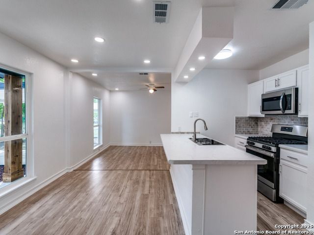 Welcome to this newly renovated 4-bedroom 2-bath corner property on a cul-de-sac. Follow the natural light leading into the dining room and the newly design kitchen with gas cooking range, new cabinets, sink, and recess lights. All new laminated floor throughout the house and ceramic tiles on both bathrooms. Refrigerator, washer, dryer convey. It is conveniently located near Pearl District, Brooke Army Medical Center, Ft. Sam Houston, Frost Bank Center, and downtown. There are parks less than one mile away for walk and recreation. Come check it out!