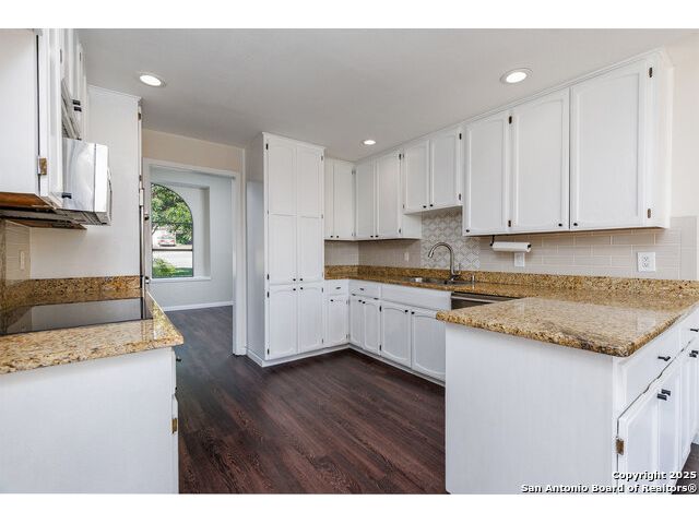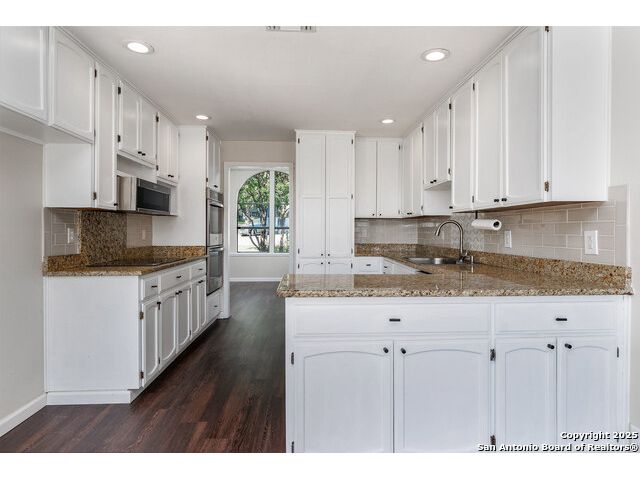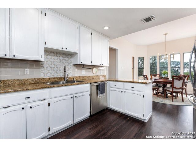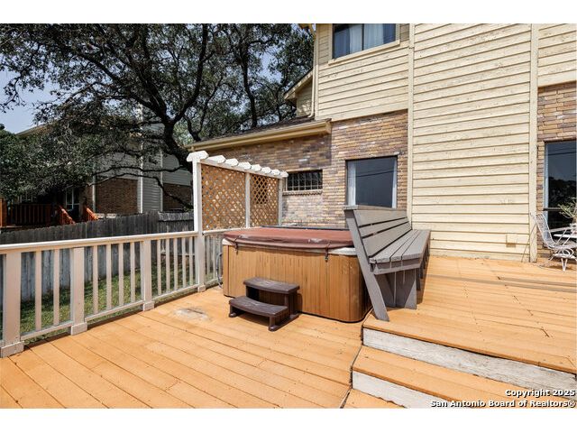 Tucked away at the end of a quiet cul-de-sac in the coveted Stone Oak community, this beautifully updated home blends privacy, style, and everyday comfort. Backing to a peaceful greenbelt with no rear neighbors, it offers a sense of seclusion that's hard to find in the city. Step inside and you'll immediately notice the soaring vaulted ceilings and open, airy layout that fills the home with natural light. The spacious primary suite is conveniently located downstairs, while the entire home features no carpet-just sleek, easy-to-maintain flooring throughout. The heart of the home opens to a massive multi-level back deck, perfect for hosting gatherings or relaxing in the hot tub while enjoying serene treetop views. From its top-rated schools to its unbeatable location near restaurants, shopping, and parks, this Stone Oak gem checks every box. If you're looking for a home that feels like a private retreat but sits close to everything, this is the one to see.