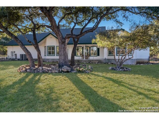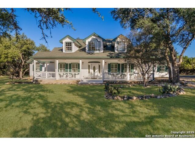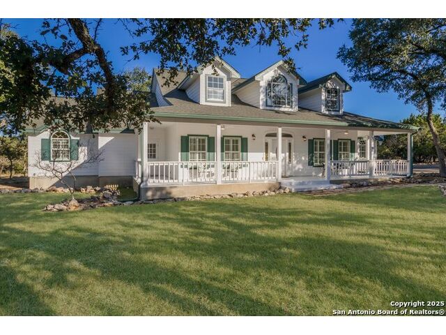 Welcome to 103 Mallard Drive, a beautiful 3-bedroom, 2-bath farmhouse nestled on 5.26 acres in the coveted River Mountain Ranch community-offering the best of Boerne ISD schools and peaceful country living. This charming home features a wrap-around porch perfect for morning coffee, evening sunsets, and relaxing under the Hill Country sky. Recent updates include a new asphalt driveway, fresh interior and exterior paint, an updated HVAC system, and elegant plantation shutters that enhance the home's light-filled living spaces and timeless farmhouse appeal. The property offers a private pond stocked with fish, and high-speed fiber internet-so you can enjoy wide-open space without sacrificing modern convenience. Inside, you'll find warm farmhouse character and an easy-flow layout ideal for gatherings and everyday comfort. Residents of River Mountain Ranch enjoy private Guadalupe River park access-perfect for kayaking, swimming, and riverside picnics-all within minutes of Boerne's historic Main Street. Experience the perfect blend of acreage, charm, and connectivity at 103 Mallard Drive-your Hill Country retreat awaits.