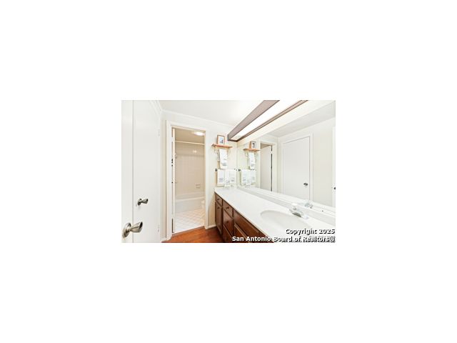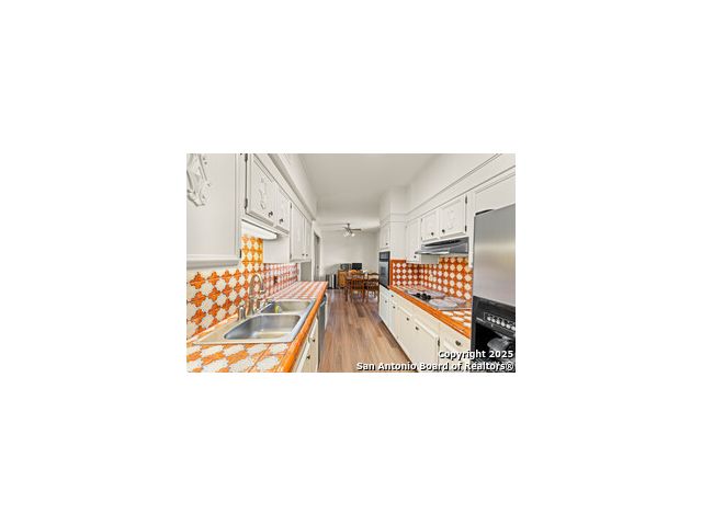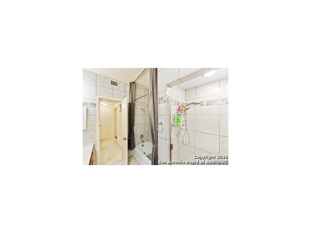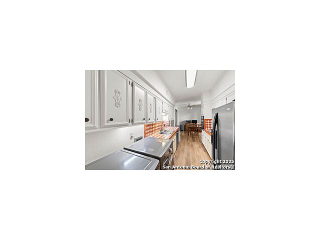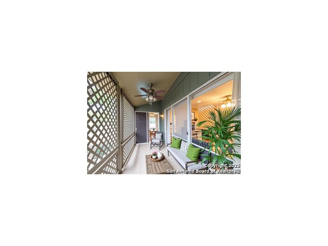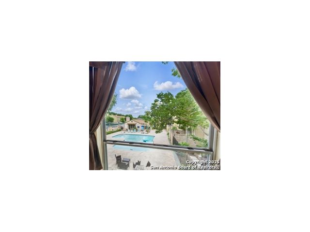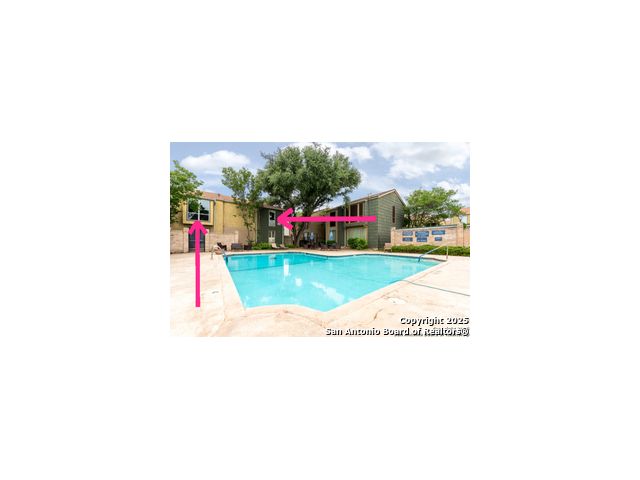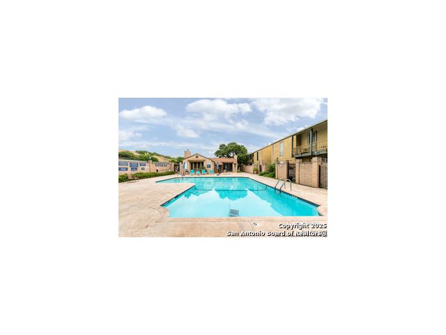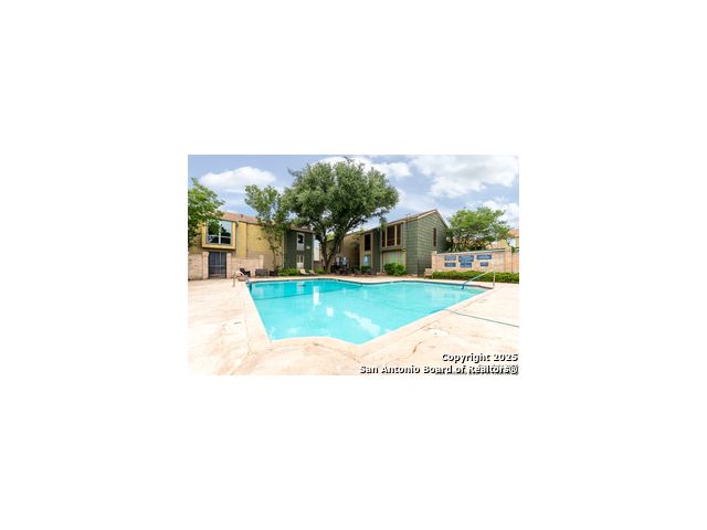 Welcome to your beautifully maintained 2-bedroom, 2-bath condo with stunning pool views! This second-floor gem is one of the few units in the community offering views of the sparkling pool right from your dining room and breakfast area, an everyday luxury unique to this second floor unit! Enjoy fresh interior paint, beautifully painted kitchen cabinets, new European Oak luxury vinyl plank flooring in kitchen, and a brand-new stainless-steel dishwasher. The kitchen also features eye-catching Saltillo tile countertops and opens to a spacious dining room with a large picture window overlooking the pool. The living area boasts engineered hardwood flooring, while the bedrooms and dining room are carpeted for comfort. Ceiling fans are installed throughout the condo, and both bedrooms offer large walk-in closets. The primary suite includes a walk-in shower and a separate tub for added relaxation. Two private patios-one off the living area and another accessible from the secondary bedroom-provide great spaces to unwind under mature trees. One patio is tiled and equipped with its own ceiling fan. Additional highlights include a full-size washer and dryer, side by side refrigerator with ice and water dispenser, double-pane windows, and two covered carport spaces. Located in a gated community in highly sought-after Northeast ISD, and just minutes from shopping, highways, and schools. Don't miss your chance to own a pool-facing unit-schedule your showing today! All utilities are covered except for electricity. Valet trash pick up from carport area.