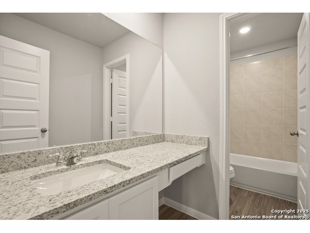 Love where you live in Cinco Lakes in San Antonio, TX! Conveniently located off Loop 1604 and Highway 90, Cinco Lakes makes commuting to Randolph Air Force Base or Downtown San Antonio a breeze! The Redbud floor plan is a spacious 2-story home with 4 bedrooms, 2.5 baths, game room, and 2.5-car garage. This home has it all, including vinyl plank flooring throughout the first-floor common areas! The gourmet kitchen is sure to please with 42" cabinets, granite countertops, and stainless-steel appliances! Retreat to the first-floor Owner's Suite featuring double sinks with granite countertops, a sizable shower, and spacious walk-in closet. Enjoy the great outdoors with a patio! Don't miss your opportunity to call Cinco Lakes home, schedule a visit today!