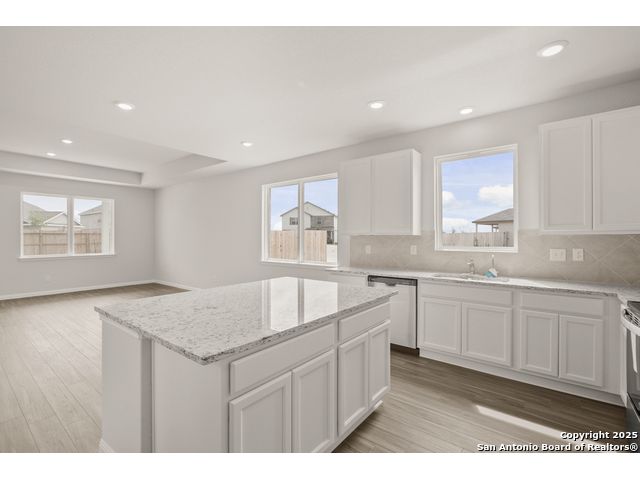 Love where you live in Cinco Lakes in San Antonio, TX! Conveniently located off Loop 1604 and Highway 90, Cinco Lakes makes commuting to Lackland Air Force Base or Downtown San Antonio a breeze! The Tivoli floor plan is a spacious 2-story home with 4 bedrooms, 2.5 bathrooms, flex space, game room, and 2-car garage. This home has it all, including privacy blinds and vinyl plank flooring throughout the common areas! The gourmet kitchen is sure to please with 42-inch cabinetry, granite countertops, and stainless-steel appliances. Retreat to the first-floor Owner's Suite featuring double sinks with granite countertops, an oversized shower, and a spacious walk-in closet! Secondary bedrooms have walk-in closets, too! Enjoy the great outdoors with a covered patio and a spacious CORNER LOT! Don't miss your opportunity to call Cinco Lakes home, schedule a visit today!