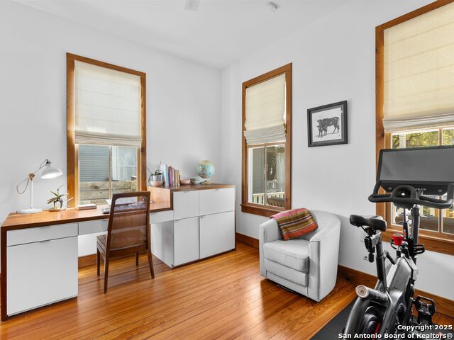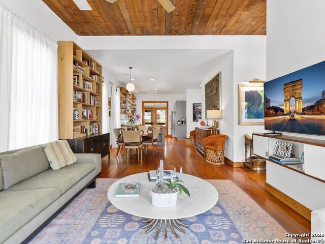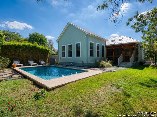 Discover the ultimate blend of historic charm and modern sophistication at this beautifully remodeled home at 211 Devine St. Located near the best restaurants and parks in the city, this property is a true urban oasis. Completely remodeled in 2017, this home has been meticulously updated to provide a contemporary and comfortable lifestyle. The renovations touched every corner, with an open floor plan connecting the living, dining, and kitchen areas for seamless flow and effortless entertaining. Soaring high ceilings create an open, airy atmosphere, while new double-pane solid wood windows throughout ensure energy efficiency and bright interiors. The gourmet kitchen is a chef's dream, featuring exquisite Carrera marble countertops, high-end appliances, and ample storage. This central hub is perfectly integrated into the main living space, making it ideal for both daily meals and large gatherings. A versatile second-story loft can serve as an additional living area, home office, gym or creative space. A custom Citizen Build metal stair railing adds a touch of modern artistry to the intelligent floor plan. The serene, expansive primary suite is a private retreat, featuring vaulted ceilings that enhance the feeling of spaciousness. Storage is abundant with multiple closets, including a custom-designed and built closet system by renowned local artisan Leo Barrios, showcasing exceptional craftsmanship. A luxurious private on-suite bath completes this personal sanctuary, offering a stunning Ipe wood soaking tub and walk-in shower. Step outside to your private paradise, the tranquil outdoor living space is enhanced by a copper mesh screened-in porch, perfect for enjoying a morning coffee or an evening cocktail. The Keith Zars pool offers a refreshing escape from the Texas heat and is surrounded by an Ipe wood sunning deck and trumpet vine pergola, perfect for afternoon gatherings. This home is ideally situated for those who love city life but cherish their privacy. Enjoy proximity to iconic landmarks like the San Antonio River Walk and Hemisfair, as well as a rich dining and entertainment scene. With its modern upgrades, exceptional design, and prime location, this property offers an unparalleled opportunity to own a piece of San Antonio's unique charm.