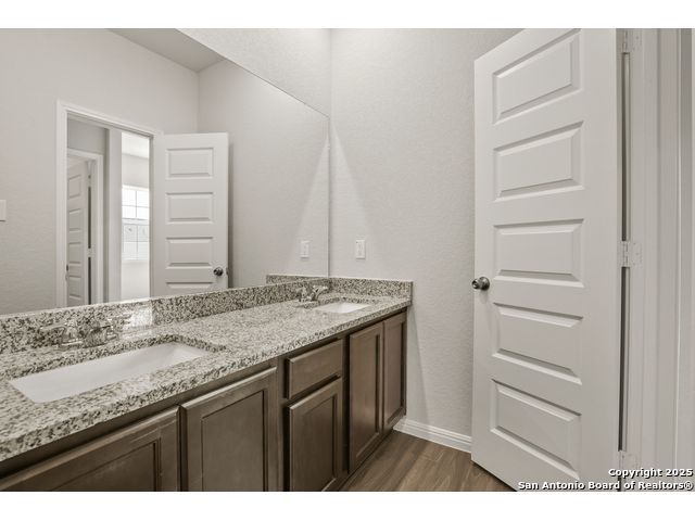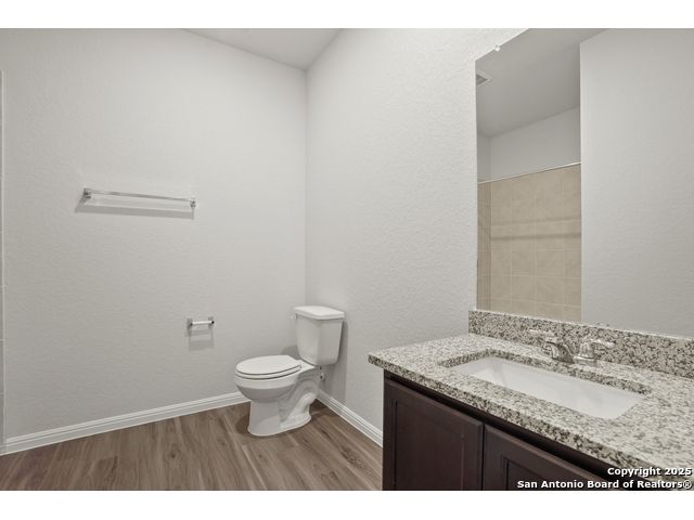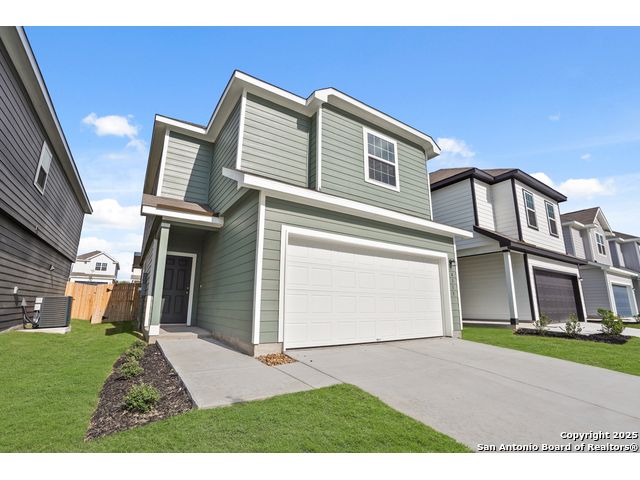Love where you live in Melissa Ranch in San Antonio, TX! The Rockhampton floor plan is a spacious 2-story home with 3 bedrooms, 2.5 baths, and 2-car garage. The first floor offers the perfect space for entertaining with vinyl plank flooring and a large kitchen island open to both the living and dining areas! The gourmet kitchen is sure to please with 42" cabinetry and granite countertops! Upstairs offers a split floor plan and private retreat for all bedrooms! Retreat to the Owner's Suite featuring double sinks with granite countertops, a sizable shower, and a walk-in closet. Enjoy the great outdoors with a covered patio! Don't miss your opportunity to call Melissa Ranch home, schedule a visit today!