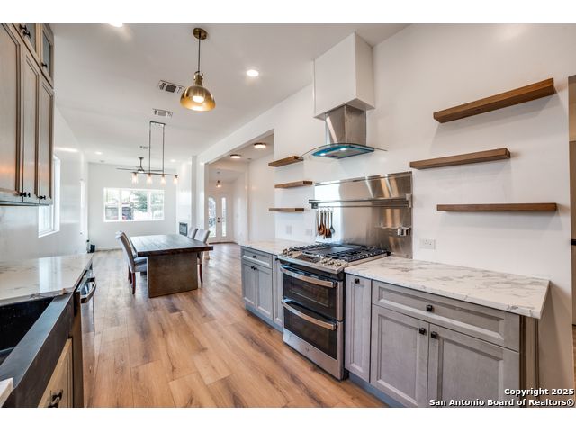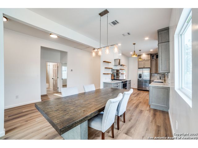 Thoughtfully designed and meticulously finished, this 3-bedroom, 2-bathroom beauty offers a level of quality and charm that's hard to find. From the moment you step inside, you'll notice the difference-every detail has been carefully considered, from the custom kitchen cabinetry and high-end countertops to the stylish light fixtures, modern hardware, and rich flooring underfoot. Sunlight pours through updated windows, giving this elegant yet cozy space an airy,