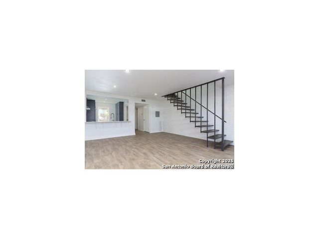 Please note: lease in place through April 1, 2026. This 78209/AHISD condo is ideal for those wishing for updated living with the ability to walk to restaurants, retail shopping, and grocery stores. The design is townhome-style with entry on the first floor, one covered parking space immediately behind the unit off the patio, and both bedrooms upstairs with a half-bath downstairs. The floors are a beautiful rectangular tile (wood appearance) with white walls, white quartz counters, breakfast bar, and stainless appliances. The exposed brick wall and iron stair rails give that urban-living touch. This condo is sleek, updated, and in the heart of the city!
