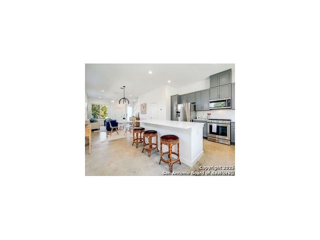 Modern and sleek, this three bedroom, two and a half bath corner residence is beautifully designed to capture natural light through abundant windows and features an open layout with soaring ceilings, quartz countertops, and premium stainless-steel appliances. A landscaped private front entry and a rear patio provide inviting spaces for morning coffee or evening sunsets. Perfectly positioned near The Pearl, this residence offers San Antonio's best dining, coffee shops, and boutique retail just moments from your doorstep. Brackenridge Park, the San Antonio Botanical Garden, and the Witte Museum are all nearby, offering endless opportunities for recreation and inspiration. The recently reimagined Ranch Motel adds even more neighborhood energy with pickleball courts, a pool, and a lively social scene. A rare opportunity to experience low maintenance living, thoughtful community amenities, contemporary design, and the vibrant cultural heartbeat of San Antonio's most dynamic urban corridor.