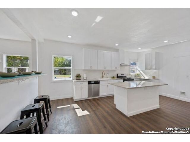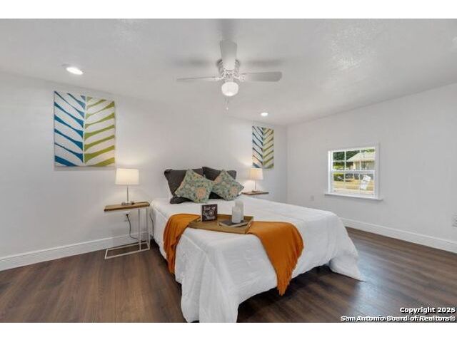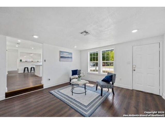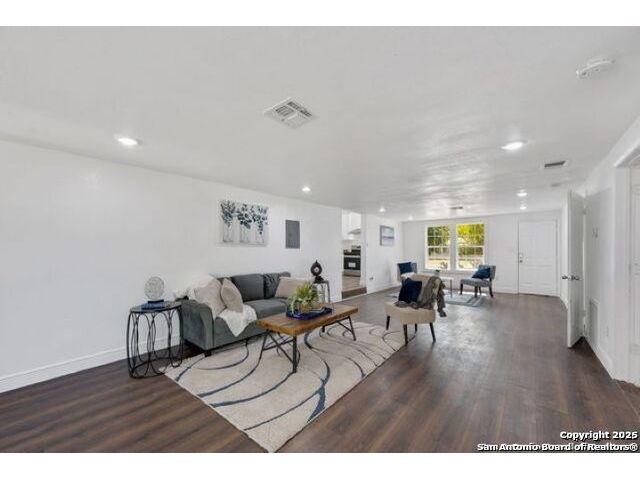 Come see this beautifully renovated single-story home on a spacious corner lot just off 410 & Rigsby. Step inside to find fresh updates throughout & an open-concept floorplan perfect for modern living. The stylish flooring adds a warm, rustic touch that flows seamlessly from room to room. The kitchen stands out with crisp white cabinetry, a charming farmhouse sink, & plenty of counter space for cooking and entertaining. Enjoy two large living areas, ideal for family gatherings or hosting guests. With five generous bedrooms and two and a half baths, there's room for everyone. This move-in-ready home combines style, comfort, and versatility.