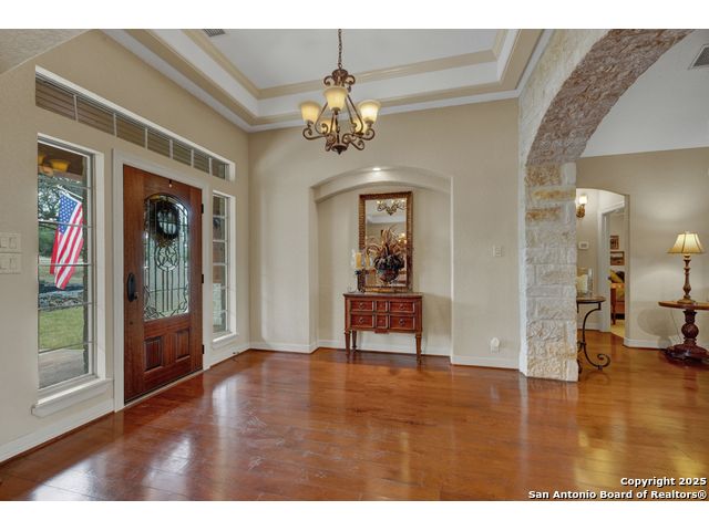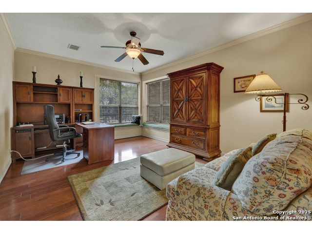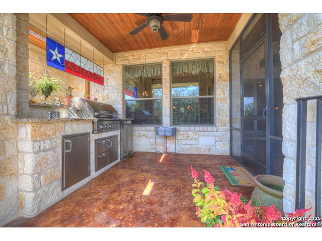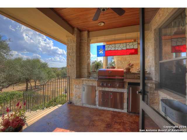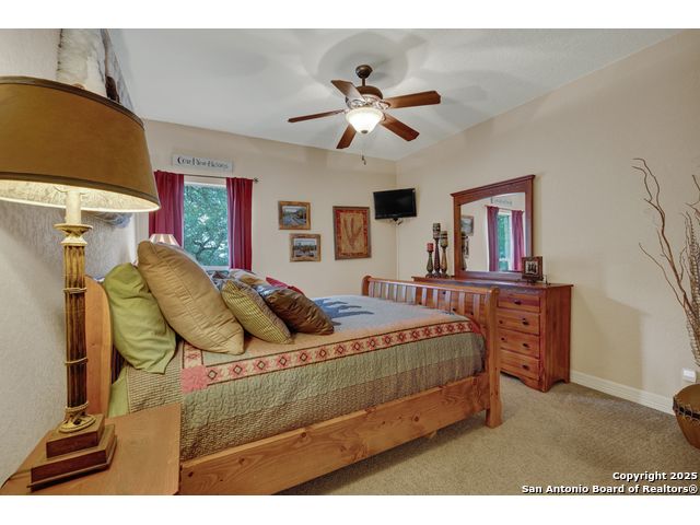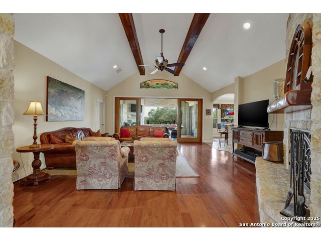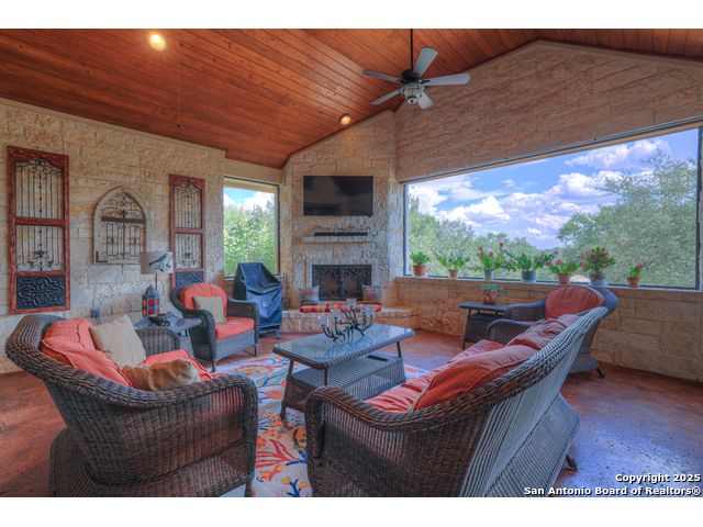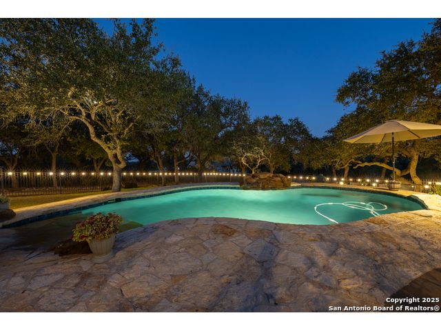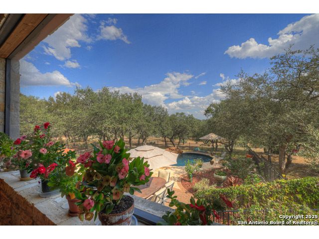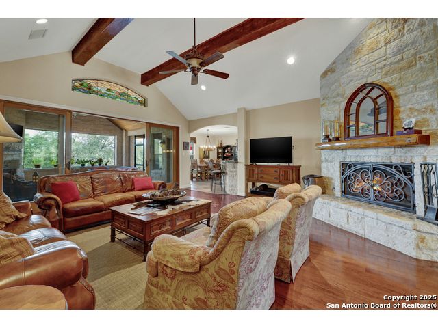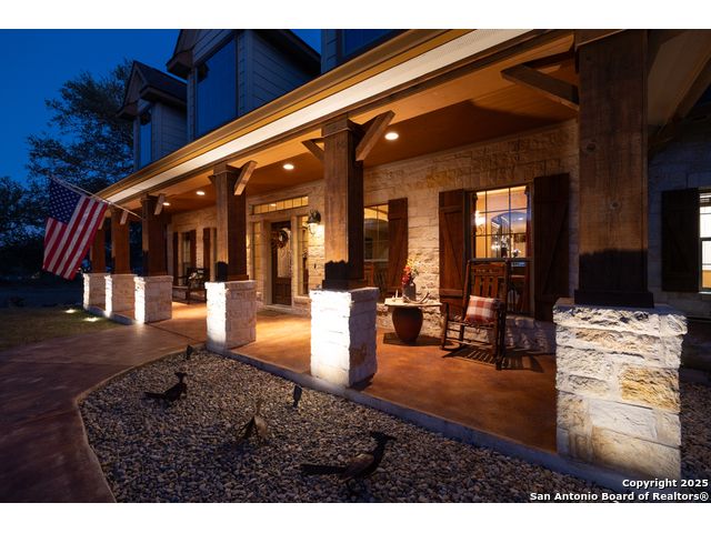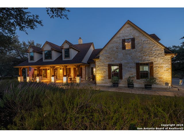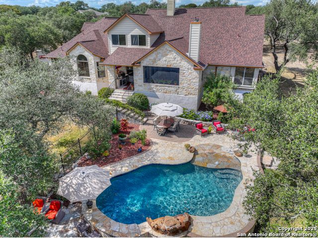 A TRUE HILL COUNTRY RETREAT WITH POOL on 2 ACRES - NOW OFFERING $20,000 BUYER INCENTIVE! Nestled among majestic oak trees, this stunning home captures the essence of Hill Country living-peaceful, private, and picturesque. From the moment you step inside, the open floor plan welcomes you with warmth and style. Thoughtfully designed for both comfort and function, the home features 4 spacious bedrooms plus a study, two dining areas, a versatile game room/man cave, 3.5 bathrooms, and a 3-car garage. The kitchen is a chef's delight with granite countertops, center island with a prep sink, a gas cooktop, double ovens, custom cabinetry, and two pantries-including one accented with charming barn doors. The only rooms upstairs are the large 4th bedroom, full bath, and the game room/man cave, offering privacy and flexibility for guests or hobbies. Step outside to your own private paradise. A spacious screened-in patio with a cozy fireplace overlooks the sparkling pool area which is enclosed by elegant iron fencing that keeps wildlife out while preserving the scenic Hill Country views. An outdoor kitchen makes entertaining and enjoying the outdoors fun and convenient. As day turns to night, the extensive landscape lighting showcases the home's beauty and creates an enchanting ambiance that highlights the architecture and natural surroundings. This home is more than a place to live-it's a lifestyle of comfort, elegance, and connection to nature. River Chase is known for it's incredible amenities: 33-acre park with clubhouse, pools, walking trails, tennis & pickleball courts, fitness center, playground, Veteran's park and fishing pond, PLUS a 58-acre park with private Guadalupe River access, pavilion, basketball court, bird viewing station, and miles of first class hiking trails - all for just $300 per year.