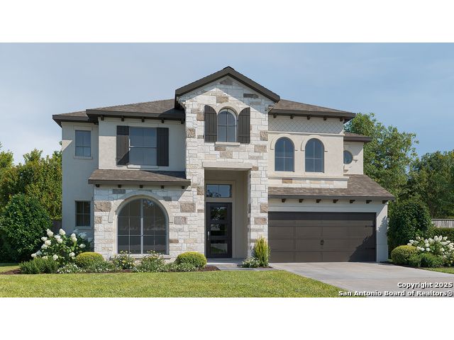 Large front porch welcomes you to this home. Two-story entry leads you to the two-story family room with a wall of windows. Home office with French doors. Formal dining room gives you access through the Butler's pantry to the kitchen. Kitchen has a large pantry and an island with built-in seating space. Morning area has five windows. Primary bedroom features a curved wall of windows. Primary bath had dual vanities, garden tub, a separate glass-enclosed shower and two large walk-in closets. Second level features a media room, game room and secondary bedrooms. Covered backyard patio. Mud room off three car garage.