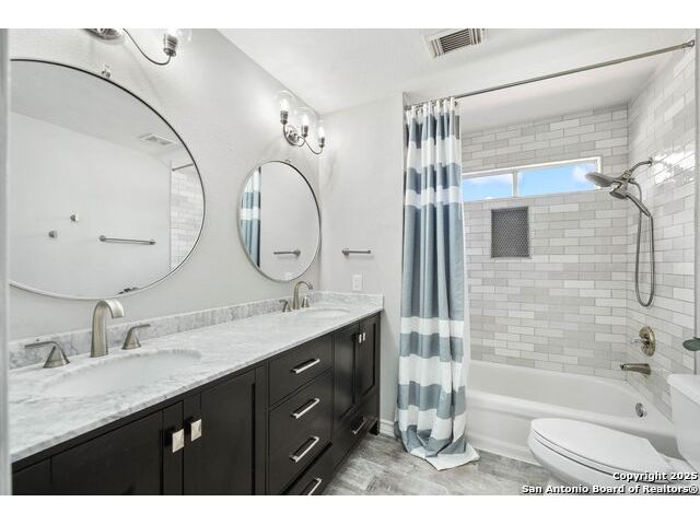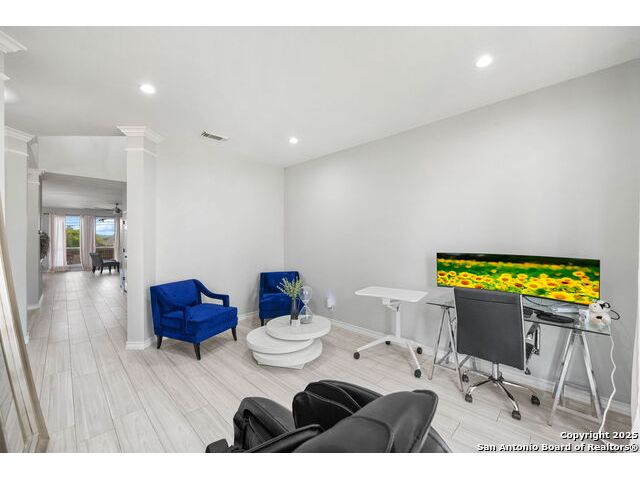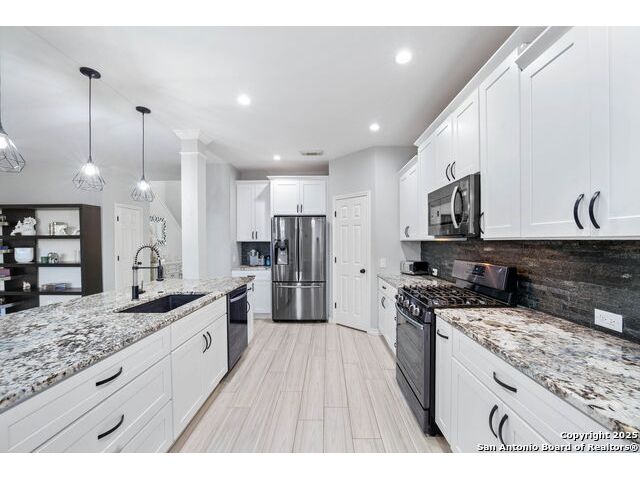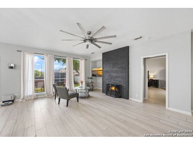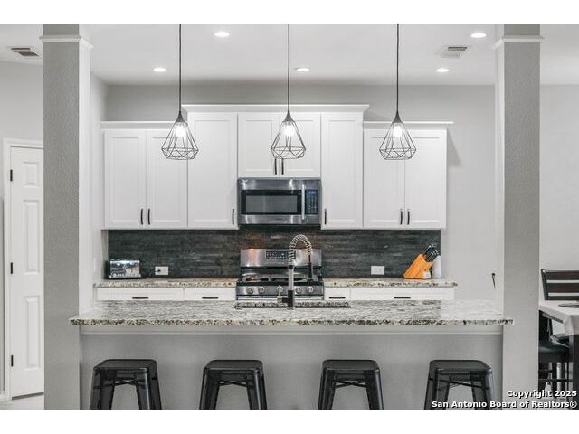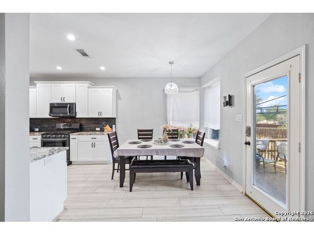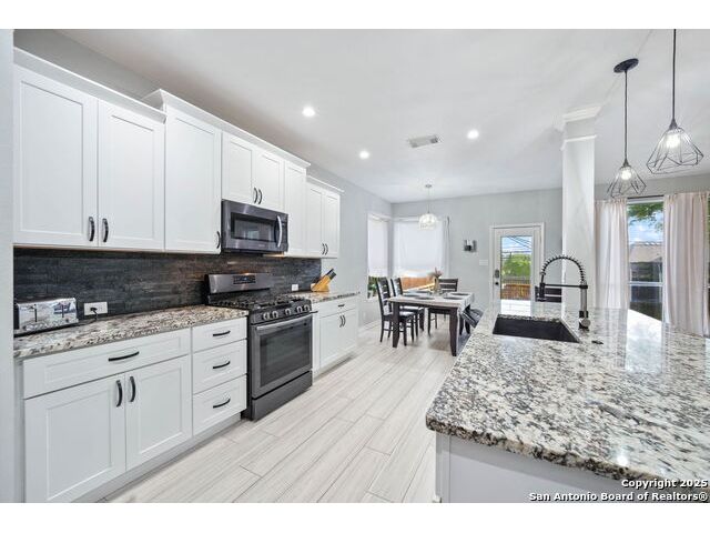 Assumable VA Loan at 2.375% Available! Welcome to this fully updated two-story home in the desirable OakRidge Pointe community! Built in 1998 and recently transformed with modern upgrades, this 3,463 sq ft home offers 5 bedrooms, 3.5 baths, and a layout designed for both comfort and style. From the moment you arrive, the classic brick exterior, two-car garage, and inviting front porch set the tone for what's inside. Step inside to an open foyer that leads to a private office on one side and a spacious dining room on the other. The main living area flows seamlessly with an open-concept design connecting the living room, updated kitchen, and breakfast area. The kitchen impresses with granite countertops, upgraded cabinetry, a stylish backsplash, and modern lighting over the island with bar seating. Stainless steel appliances including the refrigerator, dishwasher, stove/range, and microwave complete the space. The primary suite on the main floor offers fresh tile, abundant natural light, and a spa-inspired bathroom featuring separate double vanities, a garden tub, and a walk-in shower. Upstairs, you'll find a large game room ideal for movie nights or playtime, plus four additional bedrooms- one with its own private bath. Outside, enjoy your backyard retreat with an extended deck, no back neighbors, plenty of mature shade trees, and a storage shed for all your extras. Located in Northwest San Antonio near Loop 1604 and Bandera Rd, this home truly has it all, space, luxury, and thoughtful updates in a sought-after gated community just minutes from shopping, dining, Six Flags, and UTSA.