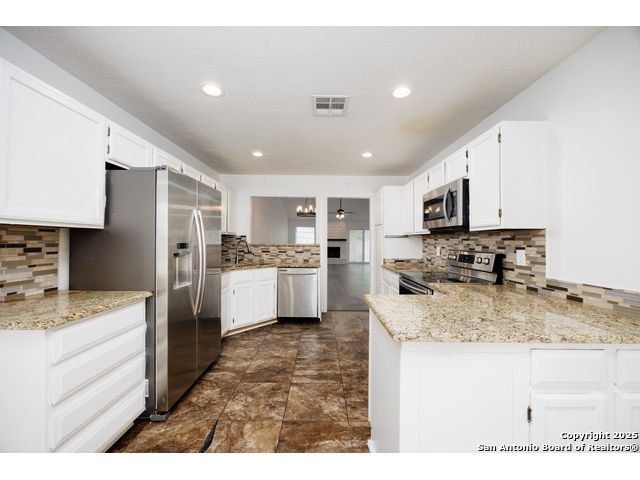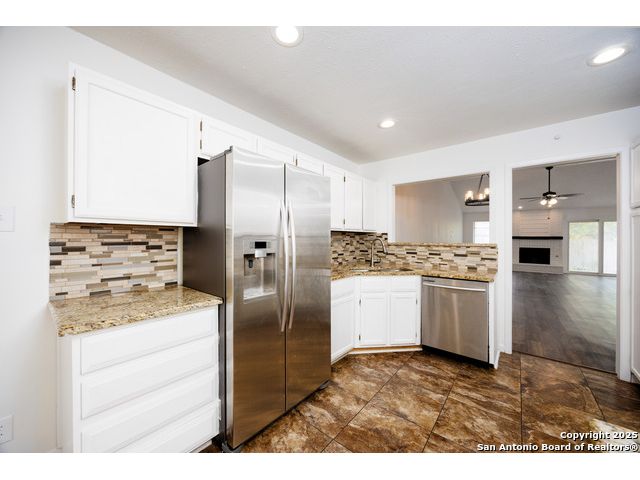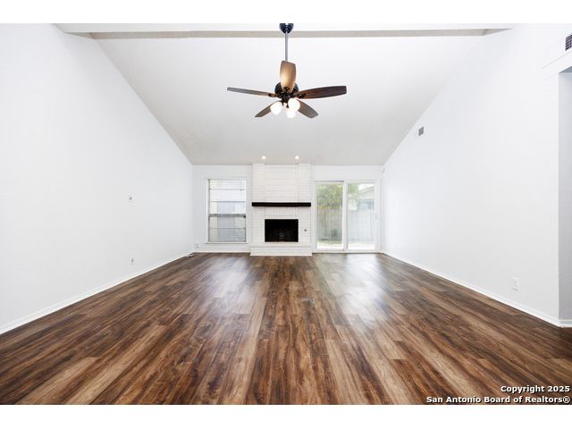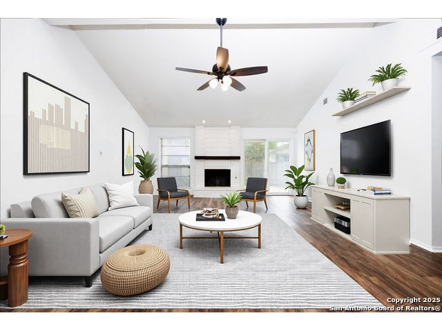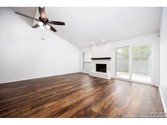 OWNER FINANCING AVAILABLE. $20K DOWN, 7.99% INT RATE, 30 YR AMORT, NO BALLOON. Welcome home! Tucked away on a quiet street, this wonderful home is ready to move in! The open floor plan boasts vaulted ceilings throughout the large main living and dining areas. The open and flowing floor plan is equipped with three bedrooms, a large dining room, a breakfast room and spacious kitchen, convenient laundry area, and wood-burning brick fireplace. The fenced back yard boasts a concrete terrace accessible from t