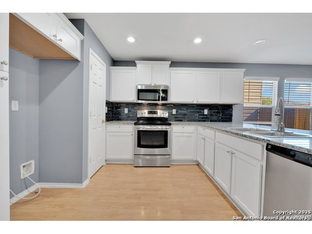 Spacious 4-Bedroom Home with Modern Updates in a Prime Location Welcome to 2710 Middleground, a beautifully maintained 4-bedroom, 2.5-bathroom home located in the desirable San Antonio 78245 area. This inviting 2-story residence offers comfort, style, and space for the whole family. The primary suite is conveniently located downstairs, featuring a walk-in closet and a private bath for added ease. Upstairs, you'll find three generously sized bedrooms and a full bath-perfect for family or guests. The updated kitchen boasts modern appliances, granite countertops, and plenty of cabinet space, opening seamlessly into the living and dining areas. French doors lead to a covered patio, ideal for relaxing or entertaining outdoors year-round. This home is equipped with solar panels, significantly reducing electricity costs by generating clean, renewable energy.