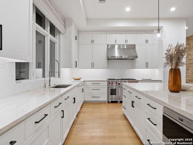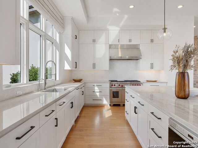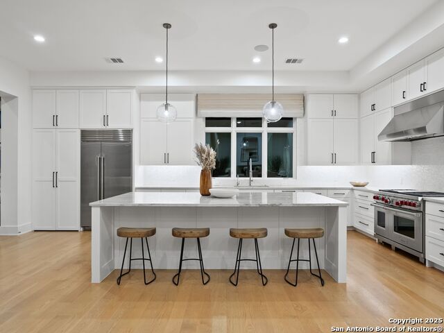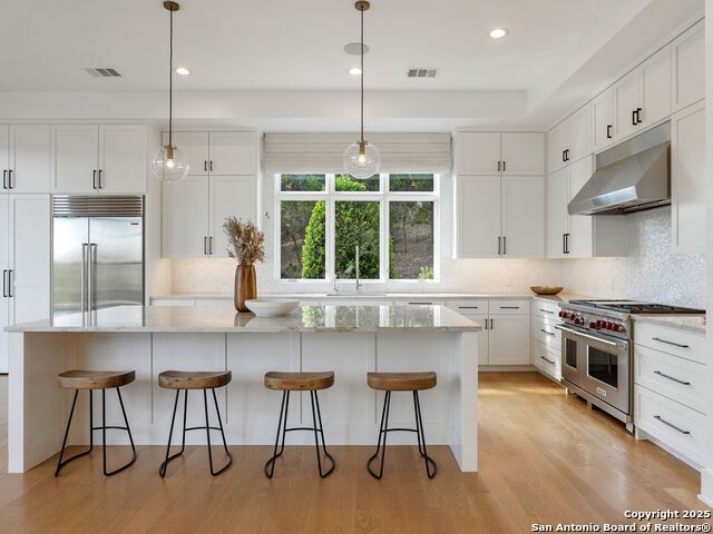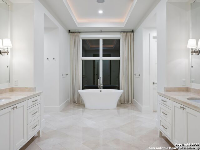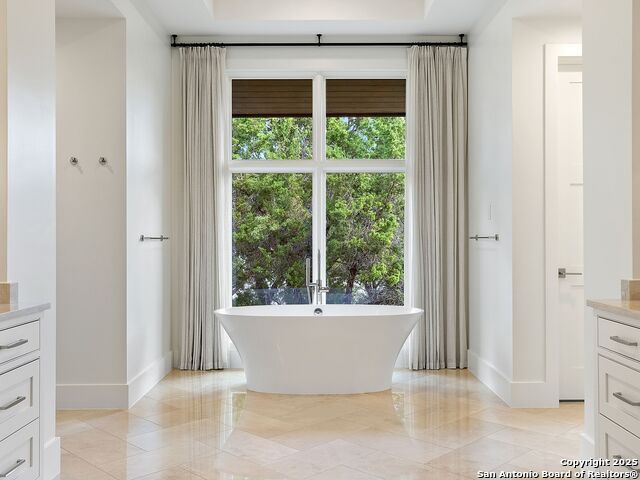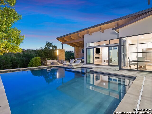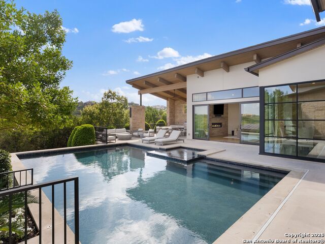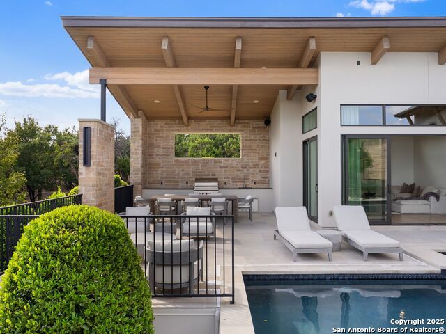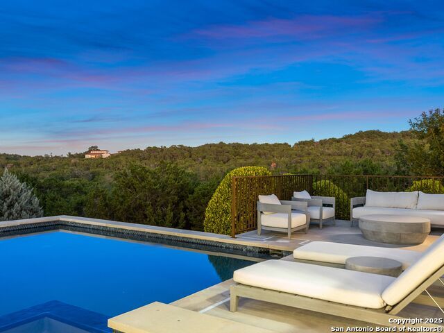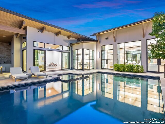 Set along one of the most distinguished streets in the exclusive Amarra enclave of Barton Creek, this striking Heyl Homes residence sits on 3.378 acres, offering unmatched privacy and breathtaking Hill Country views. With its clean architectural lines and transitional design, the home delivers a seamless blend of luxury, comfort, and nature. Expanses of floor-to-ceiling windows flood the interiors with natural light, while the open concept layout creates an effortless flow between indoor and outdoor spaces, ideal for both intimate living and large-scale entertaining. At the center of the home, the kitchen is a modern statement piece, outfitted with custom solid wood cabinetry, an oversized island with bar seating, professional-grade Wolf appliances, and gas cooking that caters to both daily life and culinary enthusiasts. The primary suite is a true retreat, inclusive of the spa-inspired bath which features a freestanding soaking tub, a sleek glass walk-in shower, and dual custom closets. Each additional bedroom offers en-suite privacy, walk-in closets, and generous space, ensuring every guest or family member experiences elevated comfort. Additional features include a dedicated office with serene front-yard views and a versatile game room with a dramatic stone fireplace and sliding doors that open to the stunning backyard. Step outside to experience a private resort-style escape. The expansive covered patio, complete with a full summer kitchen, invites effortless entertaining. A sparkling pool and spa take full advantage of the home's sweeping Hill Country setting, delivering the ultimate in outdoor living. This residence is a rare combination of modern design, natural beauty, and refined craftsmanship in one of Austin's most desirable communities.
