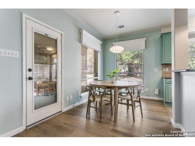 Step into the tranquil Summerfield subdivision in this inviting single story Medallion home, quietly tucked away in a cul-de-sac. The open layout is ideal for everyday living and entertaining, with a chef-ready kitchen that showcases stainless steal appliances and plentiful storage. The primary suite features a large bathroom with a separate shower, a garden tub, dual vanities, and two generous walk-in closets. Relax in the Florida room or the extended stone patio while taking in peaceful views, and enjoy convenient access to the Salado Greenway and Hardberger Park, delivering a touch of country living in the city. Updates include luxury vinyl plank flooring, updated baseboards, refreshed lighting, and new paint on ceilings and walls. Kitchen cabinet updates add a contemporary feel, and a low-maintenance native wildflower meadow along the side yard provides colorful year-round beauty with minimal upkeep. Google Fiber is installed, and the home comes with the refrigerator plus washer and dryer for convenience.