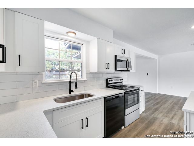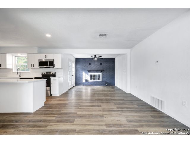 Welcome to your beautifully renovated home on the East Side! This move-in-ready 3 bedroom, 2 bath home has been completely updated from top to bottom, perfect for first time buyers or anyone looking for a fresh start. Inside, you'll find an open layout with new vinyl flooring throughout (no carpet!), a bright modern kitchen with quartz countertops, stainless steel appliances, and sleek black fixtures that tie the look together. The cozy wood-burning fireplace anchors a versatile flex space, perfect for a home office, reading nook, or casual lounge area. Both bathrooms have been tastefully updated with quartz counters, modern tile, and matte black finishes. With a new roof, new water heater, and all new finishes, this home is ready for years of low maintenance living. Located just minutes from major highways, downtown, and tons of restaurants, this home offers style, comfort, and convenience all in one!