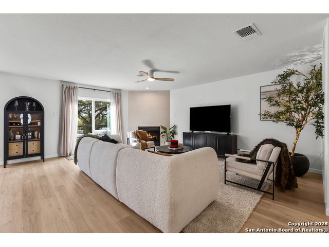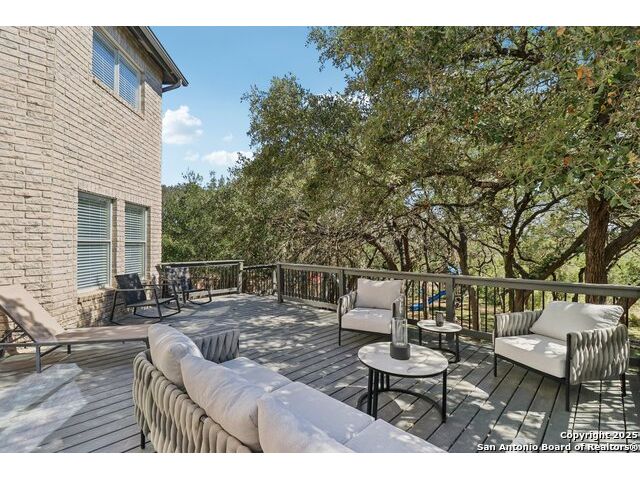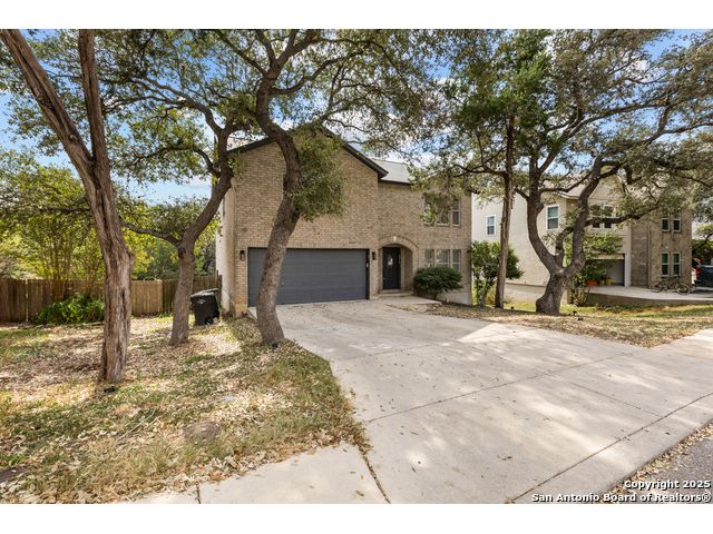 Take advantage of $5,000 closing cost assistance on 2414 Melrose Canyon, a stunning home in Canyon View! Ideal for buyers searching for value, modern features, and a prime location. Mature oak trees create a picturesque first impression as you arrive at this beautifully updated 3-bedroom, 2.5-bath home nestled on a peaceful greenbelt lot-offering both privacy and stunning natural views. Step inside to an inviting open-concept floor plan with gorgeous flooring throughout the main living and dining areas, perfect for both everyday living and entertaining. As you enter, the front flex space can easily be used as a home office, formal dining room, or additional living area to suit your lifestyle needs. The spacious living room features a beautiful fireplace and large glass doors that open to an elevated deck-ideal for relaxing and enjoying the lush, tree-filled backyard. The island kitchen flows seamlessly into the breakfast nook, providing a warm and functional space for casual dining. Upstairs, the expansive primary suite offers a tranquil retreat with a versatile sitting area-perfect for a home office, nursery, or reading corner. The updated primary bath showcases modern finishes, dual vanities, and a walk-in shower for ultimate comfort and style. Two additional bedrooms, a beautifully remodeled secondary bath, and a flexible game room-currently utilized as a media/theatre room-offer plenty of room for family and guests. Located just minutes from Loop 1604, this home provides quick access to top-rated schools, shopping, dining, and military bases. Experience the perfect balance of comfort, convenience, and natural beauty-schedule your private tour today and discover why Canyon View is one of San Antonio's most sought-after neighborhoods!