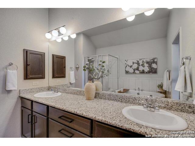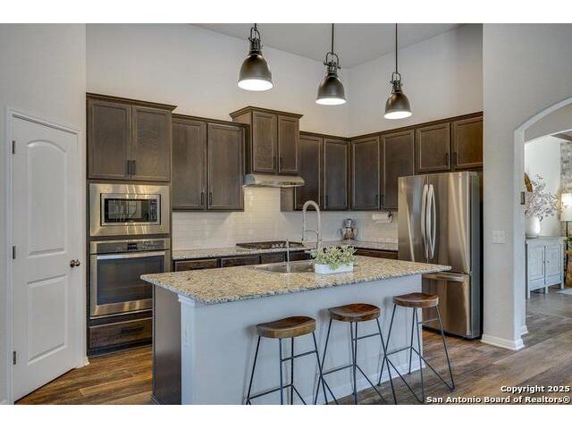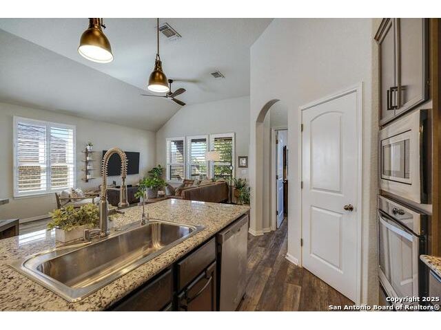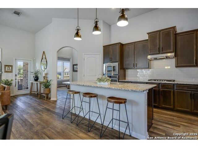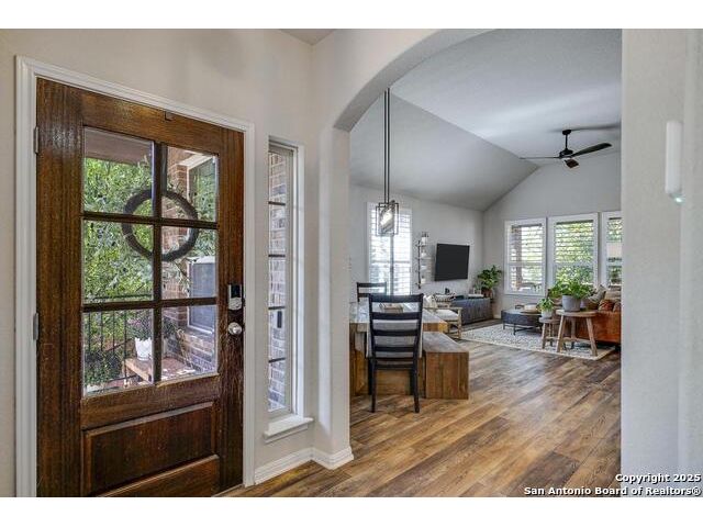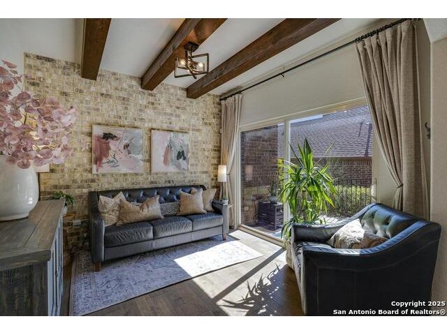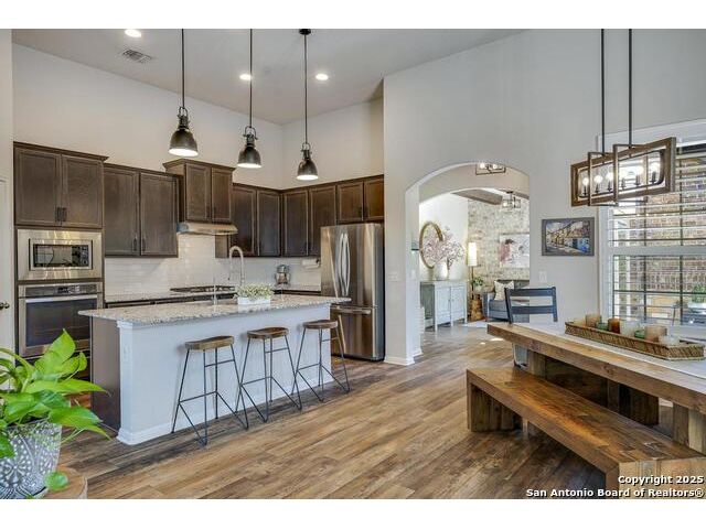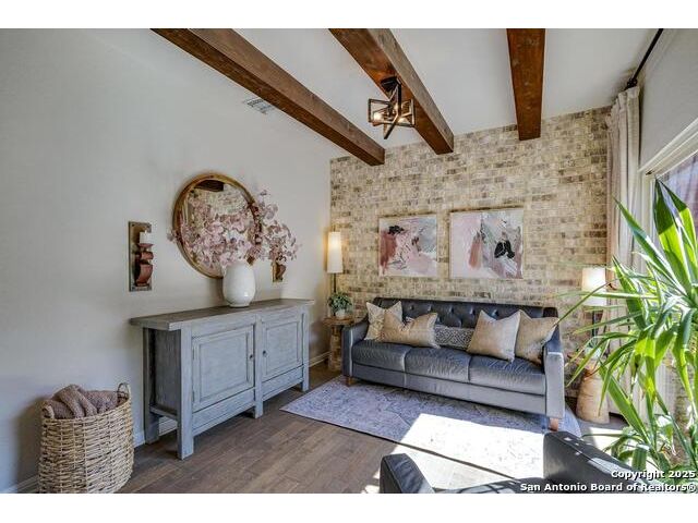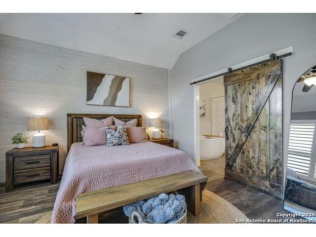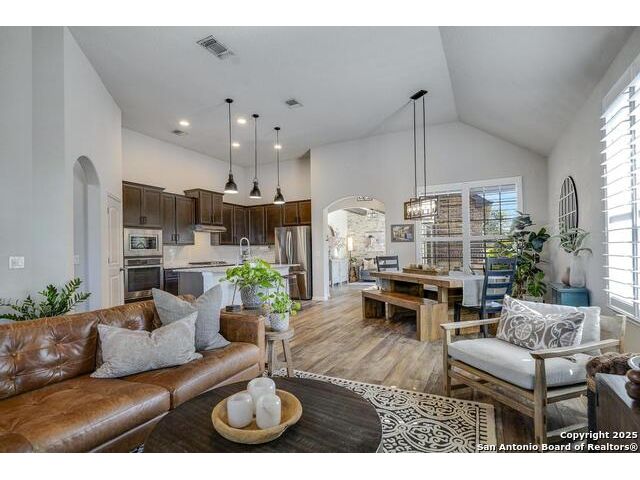 Assumable 2.75% VA Loan, 45 day closing available. Located in a small gated community, this former Sitterle model home offers luxury living with over $30K in recent upgrades! A large private front porch and new custom front door welcome you inside to high ceilings, luxury vinyl plank and engineered wood floors throughout. The open living area features a spacious island kitchen with gas cooking, stainless appliances, and updated hardware on custom cabinets. The private primary suite includes barn doors leading to a spa bath with a standalone tub and custom closet. A flexible second living space or study showcases a brick accent wall and wood beam ceilings. Additional highlights include a mudroom, water softener, alarm system with outdoor cameras, large Trex deck in back, and HOA-maintained front and back landscaping and care.