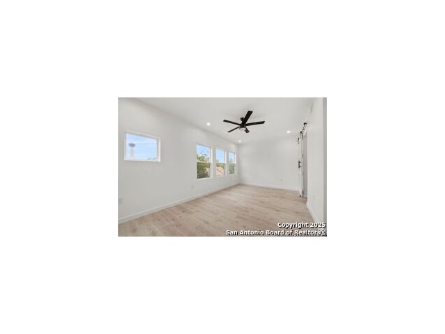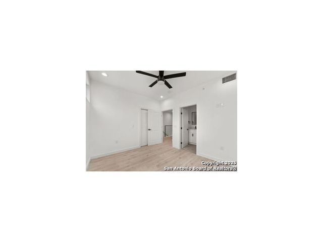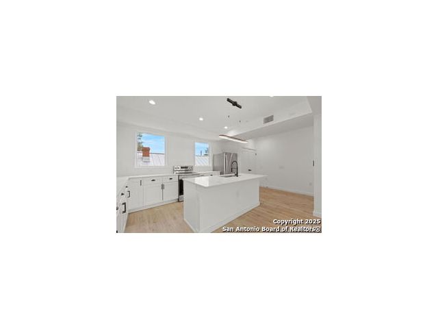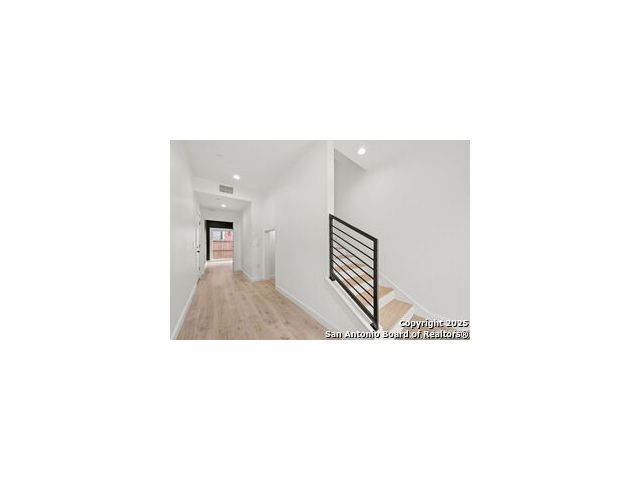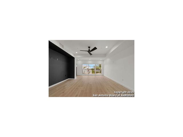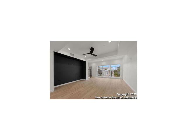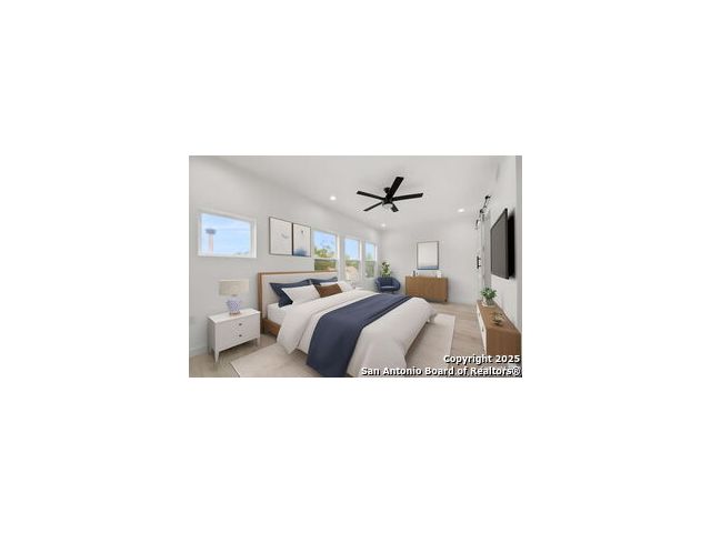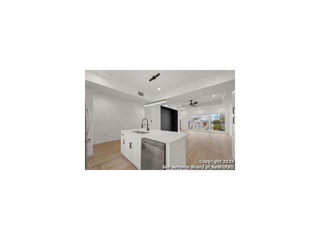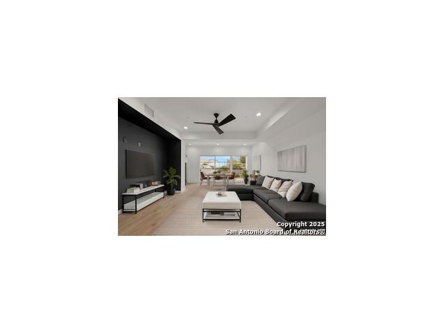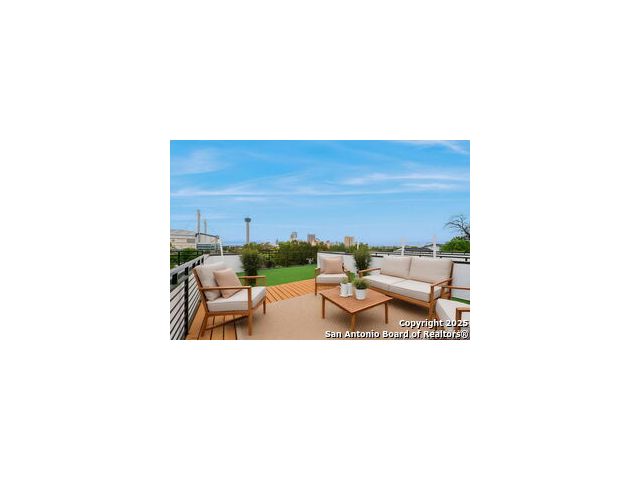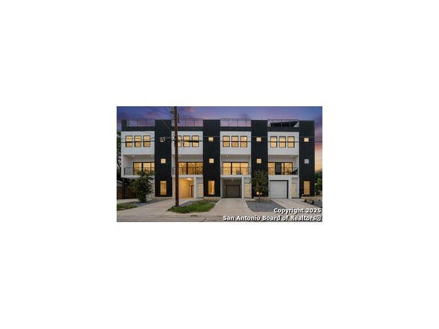 Discover urban elegance at 310 S Mesquite Street, Unit 103, a modern three-story condominium offering 1,745 square feet of refined living space and unforgettable city views. This residence features three bedrooms, three full baths, one half bath, and an attached one-car garage for added convenience and security. The first level includes a spacious bedroom that can easily double as a home office or theater room, complete with a full bath-perfect for guests or a flexible work-from-home setup. The open-concept main level welcomes you with a bright and contemporary living area that flows seamlessly into a chef-inspired kitchen featuring quartz countertops, stainless steel appliances, a generous island, and a convenient half bath nearby. On the upper level, each bedroom enjoys the privacy of its own ensuite bath, while the primary suite provides direct access to the rooftop terrace. The crowning feature is the private rooftop terrace, ideal for entertaining or simply relaxing while taking in panoramic views of the Tower of the Americas, the Alamodome, and the downtown skyline. With stylish finishes, a functional layout, and a walkable location just minutes from Hemisfair Park, the River Walk, the Convention Center, and other downtown attractions, this home offers a rare opportunity for luxury city living wrapped in modern design.
