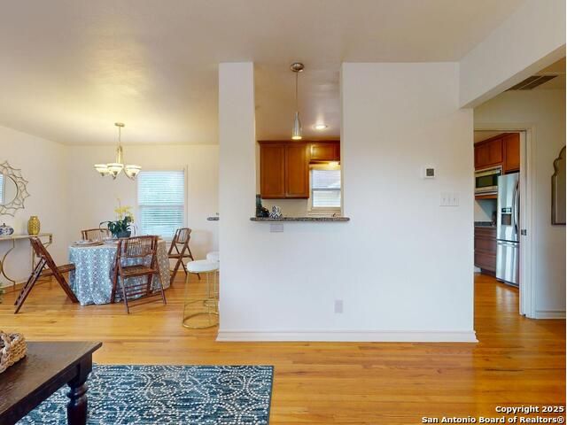 You're welcomed by the spacious, open living area highlighted by natural light & sparkling wood floors. Fully equipped kitchen ready for entertaining your family & friends- whether serving buffet-style on breakfast bar, BBQ & chilled beverages on your large entertaining deck, or celebrating more formal occasions around the dining table. Split floor plan allows privacy for everyone. At the end of your day, relax & unwind in the sitting area of your Primary bedroom. Sizable primary bathroom features shower, double vanity, and spacious storage cabinets. Plentiful closet space throughout & convenient indoor utility room. Ample corner lot with fenced backyard highlighting raised bed gardens. Perfectly located within walking distance to Alamo Heights Jr. High, Woodridge Elementary & Alamo Heights High. Terrell Heights features a Community Garden, Playground/Park, and nearby Charis Park with Farmer's Market (Sat.), Food/Coffee Trucks & gardens for walking your dog or tossing frisbee with the kids.
