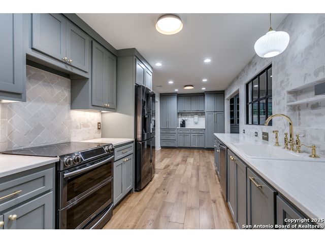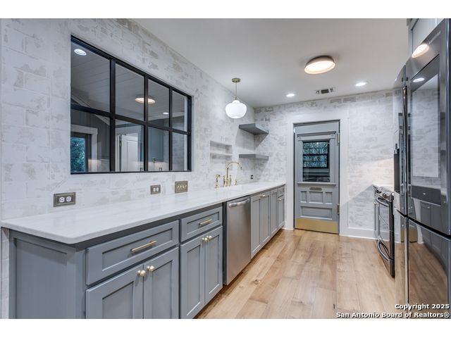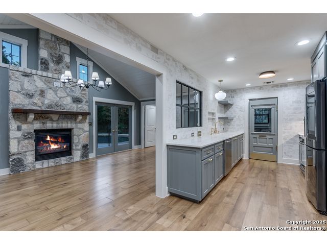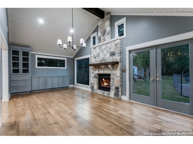 Welcome to this beautiful home on nearly 1 acre in Downtown Boerne walking distance to local dining and shopping on Boerne's famed Hill Country Mile on Historic Main Street. This home has been completely renovated inside and out and is absolutely stunning. Interior finishes include gorgeous hardwood flooring, vaulted ceilings, dual fireplaces, custom built in shelving, custom cabinetry and designer tile, hardware and paint selections. The fantastic floor plan and details of the design meet the demands of the discerning luxury home buyer. This beautiful residence offers 4 bedrooms, 2 full bathrooms, two living and dining areas plus a generous utility room. The large lot offers a detached garage, an additional versatile studio/workshop, an in ground pool, fenced garden and charming pergola off the pool. The front and back porches are spacious and relaxing. The exterior stone is a classic "German Schmear" with a complimentary blue porch ceiling on the large front porch. This home sits on one of Downtown Boerne's favorite storybook streets. The opportunity to purchase a property of this kind does not come available often. Enjoy privacy and proximity blocks from the Historic Downtown center of one of the most coveted towns in Texas. The City of Boerne offers exemplary schools and an incredible lifestyle to the members the community. This incredible property, with a large city lot, a pool and walkability is an outstanding opportunity. Showings by appointment only.