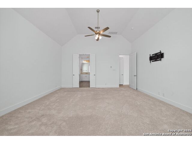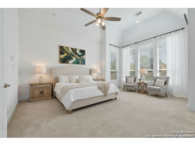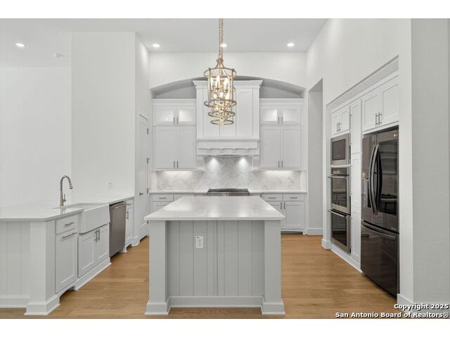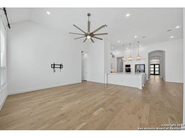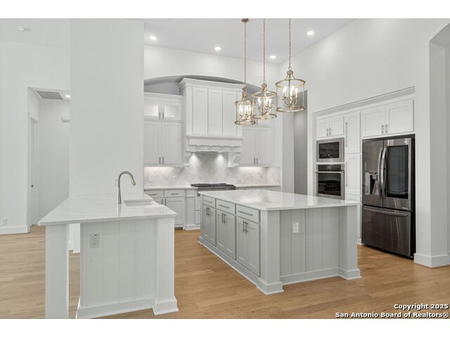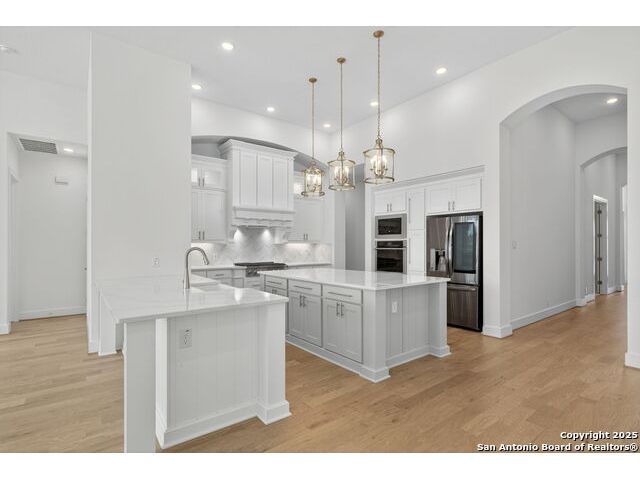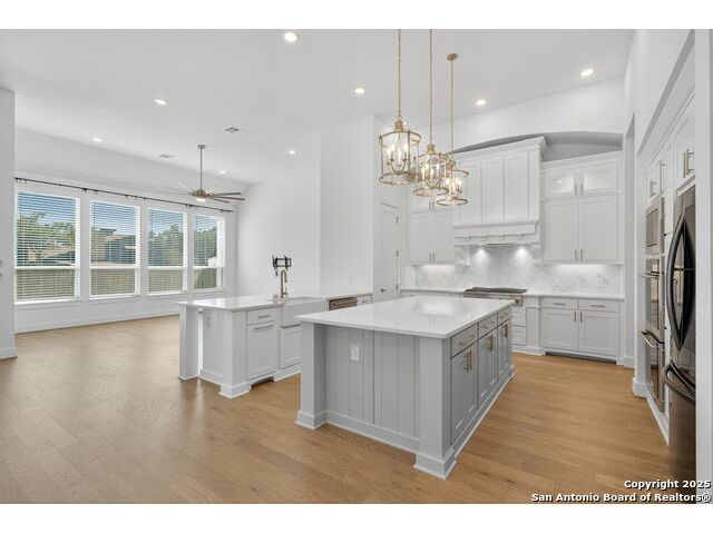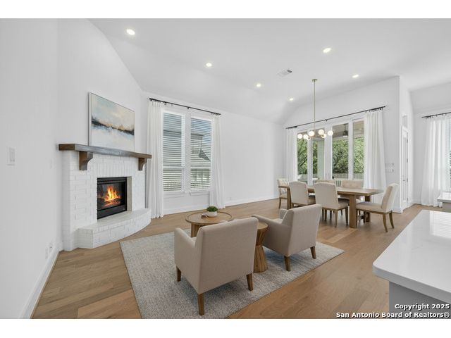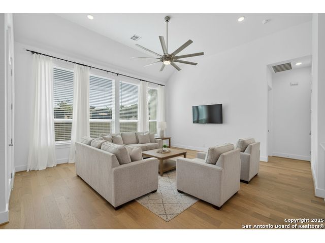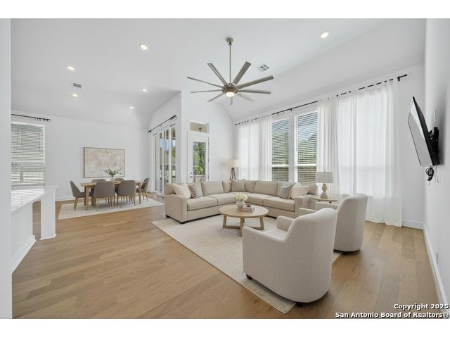 Experience refined Hill Country living in this meticulously designed Highland Home, nestled within the prestigious gated community of Front Gate in Boerne ISD. Built in 2023, this single-story contemporary residence seamlessly blends modern elegance with everyday comfort. The thoughtfully curated layout spans over 3,000 square feet, featuring four spacious bedrooms, three full baths and one half bath, and an inviting open-concept design ideal for both entertaining and relaxation. At the heart of the home, the gourmet kitchen impresses with custom cabinetry, expansive quartz countertops, stainless steel appliances, and a generous double islands that anchor the space in effortless sophistication. The adjoining living room showcases soaring ceilings, abundant natural light, and designer finishes that create a warm, elevated ambiance. The private owner's retreat offers a spa-inspired sanctuary with dual vanities, a soaking tub, and a separate walk-in shower. Secondary bedrooms provide flexibility for guests or a dedicated office. Additional highlights include a tankless water heater, radiant barrier, 16+ SEER HVAC, and enhanced energy-efficient features for year-round comfort. Outside, enjoy the peaceful ambiance of drought-tolerant landscaping and Hill Country breezes within a community offering controlled access and a charming park and playground. Located just minutes from I-10, shopping, dining, and the acclaimed Boerne schools-this property delivers the perfect blend of convenience, luxury, and tranquility.