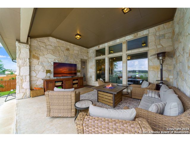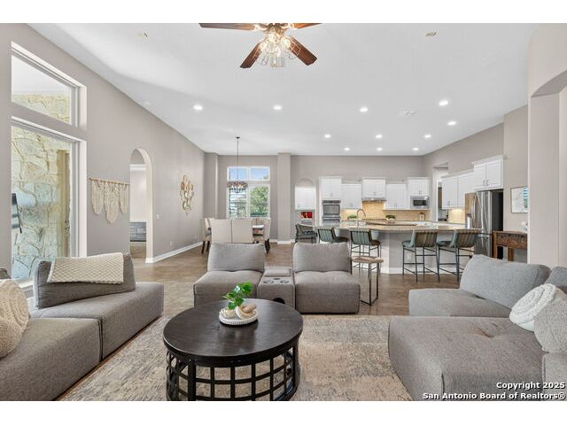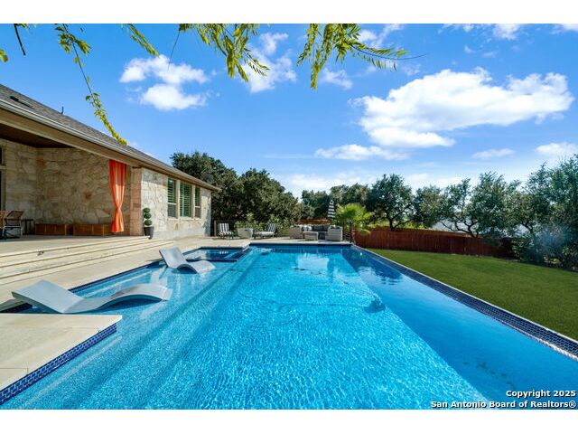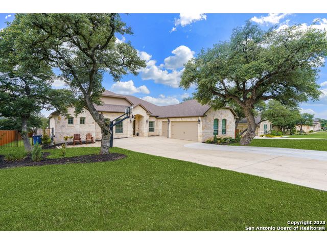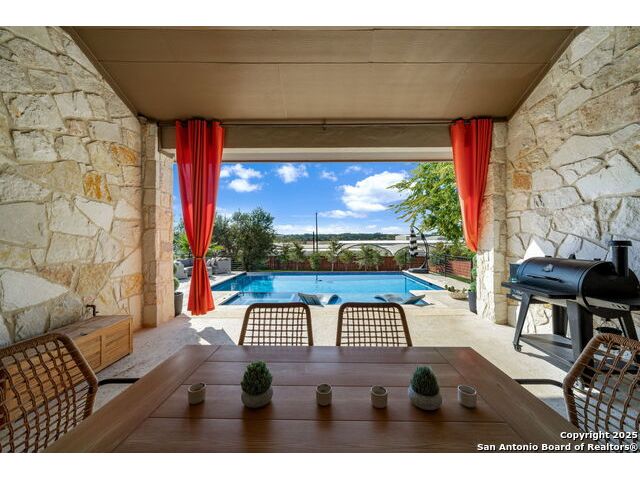 Tucked in the heart of the Texas Hill Country, this single-story stunner in Balcones Creek blends everyday comfort with just the right touch of wow. With over 3,500 square feet of stylish living space, soaring ceilings, and walls of windows that frame those signature Hill Country views, this home feels as open and bright as it is welcoming. The chef's kitchen is the ultimate hangout spot - think high-end stainless steel appliances, custom cabinetry, and an oversized island that's perfect for morning coffee or impromptu gatherings. The great room flows seamlessly to the dining area and covered patio, making entertaining effortless. Need a movie night or home office? You've got dedicated spaces for both. When it's time to unwind, the primary suite delivers serious relaxation vibes with a spa-inspired bath featuring a soaking tub, walk-in shower, and dual vanities. Step outside and cue the resort feels - a sparkling pool and spa surrounded by lush landscaping and peaceful Hill Country views. Set inside the sought-after gated community of Balcones Creek, this home is all about the good life - luxury, privacy, and convenience just minutes from Boerne's best shops, dining, and top-rated schools.