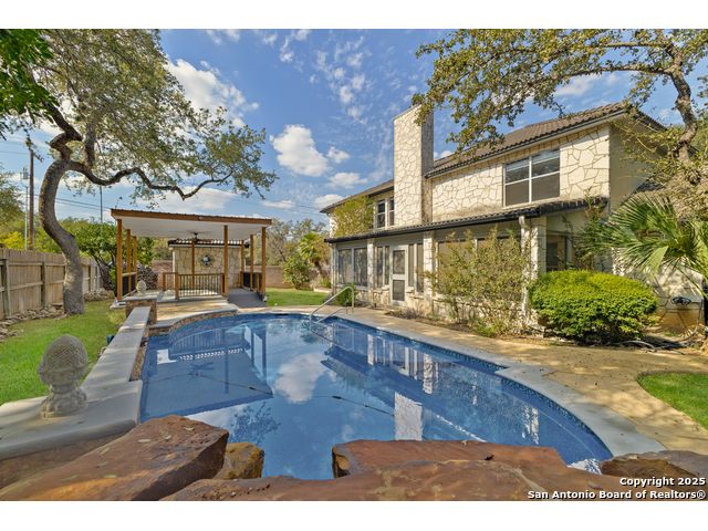 Welcome to 3914 Creek Rock Drive, a stunning residence in one of San Antonio's most established and desirable neighborhoods. This beautifully updated home blends classic design with modern comfort and offers a truly refined living experience. From the moment you arrive, the property makes a lasting impression. A manicured front yard and a graceful stone walkway lead you to a grand entry that opens into an interior filled with natural light, high ceilings, and a warm inviting energy. Every inch of this home reflects thoughtful care, timeless quality, and attention to detail. As you enter the main living area, you are greeted by an open layout that seamlessly connects the living room, dining room, and kitchen. Large picture windows allow sunlight to pour in, framing beautiful views of the outdoor retreat. The living room is anchored by an elegant fireplace surrounded by custom stonework that creates a sense of calm and comfort. Wide plank hardwood floors and soft neutral tones create the perfect backdrop for both relaxation and entertaining. The kitchen is a true centerpiece of the home. It features expansive granite countertops, a generous island with bar seating, stainless steel appliances, and custom cabinetry that provides exceptional storage and style. Whether you are preparing a quiet meal for two or hosting a large gathering, this kitchen delivers both beauty and functionality. The adjoining dining space flows naturally to the outdoor living area, making entertaining effortless and enjoyable. The primary suite is a private sanctuary designed for comfort and peace. It features large windows that overlook the backyard oasis and a layout that feels both spacious and intimate. The ensuite bathroom offers a spa-like experience with dual vanities, a soaking tub positioned perfectly beneath a window, and a glass-enclosed shower finished with sleek tile and high-end fixtures. The walk-in closet provides abundant space and thoughtful organization. The home also features several well-appointed guest bedrooms, each designed with comfort in mind. A dedicated home office, media room, or flex space provides endless possibilities for modern living, whether for work, study, or relaxation. Among the most impressive updates the current owner made are the installation of a custom elevator and a resort-style swimming pool. The elevator provides convenience and accessibility for every level of the home, offering ease of movement for residents and guests alike. The swimming pool transforms the backyard into a private paradise. Surrounded by mature landscaping, the pool features a sun shelf for lounging, soothing water features, and space for both play and serenity. This is the perfect setting for morning swims, weekend gatherings, or quiet evenings under the Texas stars. The outdoor area also includes a covered patio designed for year-round enjoyment. There is room for an outdoor kitchen, dining area, and lounge seating, creating a natural extension of the interior living space. Whether hosting family and friends or enjoying peaceful solitude, this outdoor retreat truly embodies luxury living. Additional features include a spacious utility room with extra storage, a two-car garage, and abundant closet space throughout the home. Every element was designed to create a balance of comfort, elegance, and practicality. Located in a prime area of San Antonio, this home offers easy access to premier shopping, dining, and entertainment while maintaining the tranquility of a well-established community. Top-rated schools, beautiful parks, and major highways are just minutes away, making it an ideal location for both convenience and lifestyle. 3914 Creek Rock Drive is more than just a home. It is a statement of sophistication, comfort, and thoughtful living. From the luxurious primary suite to the elevator that connects every level and the stunning backyard pool that defines outdoor living, this property represents the very best