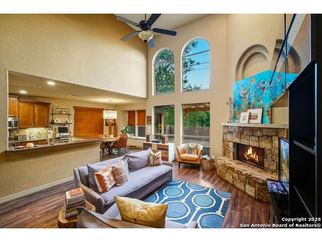 Click the Virtual Tour link to view the 3D walkthrough. Discounted rate options and no lender fee future refinancing may be available for qualified buyers of this home. Welcome to this stunning five-bedroom, two-story home offering an exceptional blend of space, style, and sophistication. Step inside to discover an open floor plan with soaring ceilings, where the second-level overlook provides a striking view of the living area below-creating a true sense of grandeur and openness. The primary suite is conveniently located on the first floor, featuring a luxurious ensuite bath complete with a separate soaking tub and walk-in shower. The spacious kitchen seamlessly connects to the living and dining areas and includes ample counter space, a center island, and a cozy eat-in nook, perfect for gatherings both large and small. Upstairs, a generous game room offers endless possibilities for entertainment, hobbies, or a secondary living space. Each additional bedroom provides comfort and flexibility for family or guests. Outside, enjoy a fenced backyard, ideal for hosting, relaxing, or enjoying quiet evenings at home. This remarkable home combines grand design with everyday comfort-perfect for those who love space, light, and effortless living.