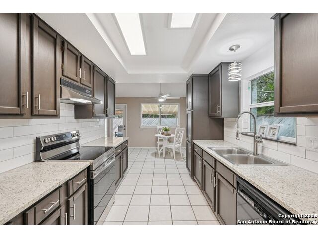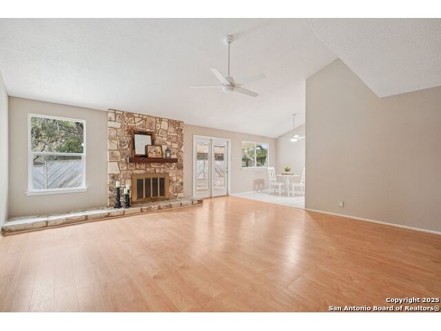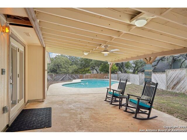 Located in the Silver Creek subdivision within the Great Northwest community, this well-maintained home offers style, comfort, and convenience. The living area features a striking stone fireplace, creating an inviting atmosphere for relaxing or entertaining. The kitchen is well appointed with stainless steel appliances, double sinks, and granite countertops. Upgraded windows, fresh interior and exterior paint, and a fully refreshed front exterior enhance both efficiency and curb appeal. The backyard is a private retreat with an in-ground pool that has received over $30,000 in upgrades, including a new pumping system. A covered patio and surrounding cement deck offer plenty of space for outdoor enjoyment. The two-car garage provides ample storage, and the neighborhood offers fantastic amenities including a pool, sports court, playground, and clubhouse. Proudly located within the highly regarded Northside Independent School District, this home also offers easy access to shopping, dining, and major highways, making it a wonderful place to enjoy San Antonio living.