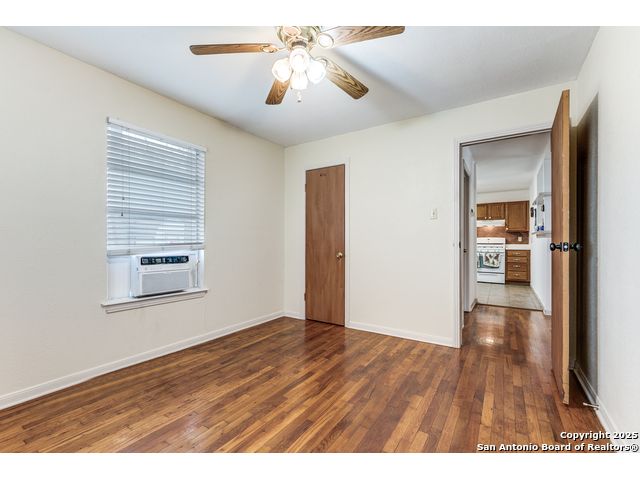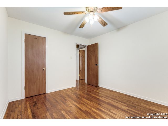 A beautifully maintained San Antonio home full of character and charm. Featuring warm wood floors throughout and tile in the kitchen, this move-in ready property offers comfort and style. The spacious backyard is perfect for entertaining or relaxing under mature pecan trees, complete with a detached storage shed for added convenience. Located near schools, parks, and major highways - this home is ready for you to make it your own!
