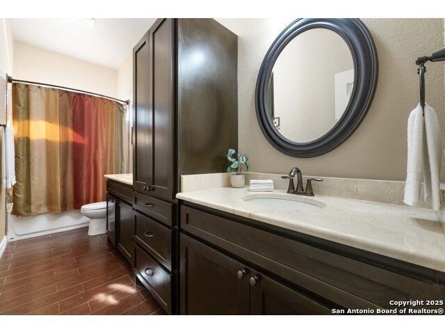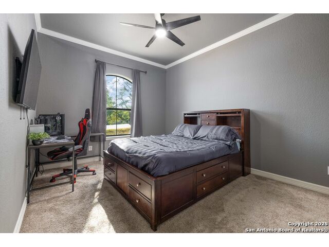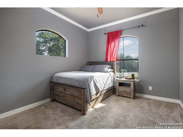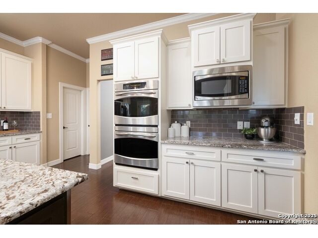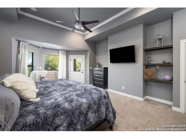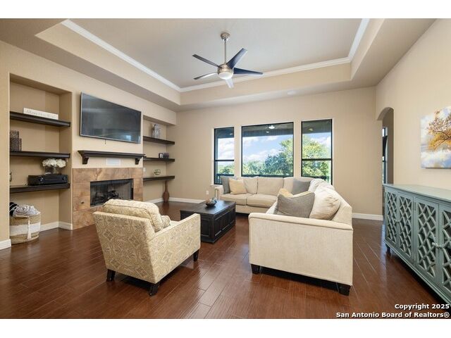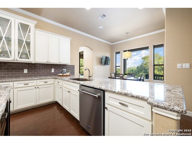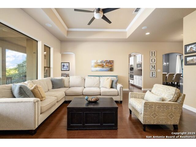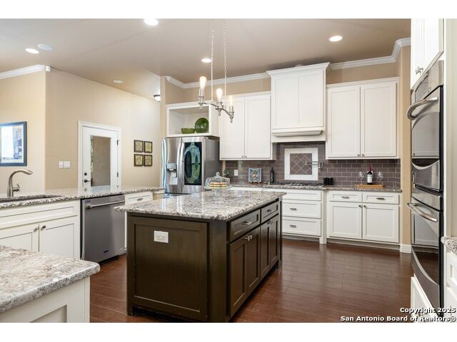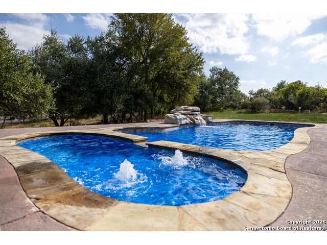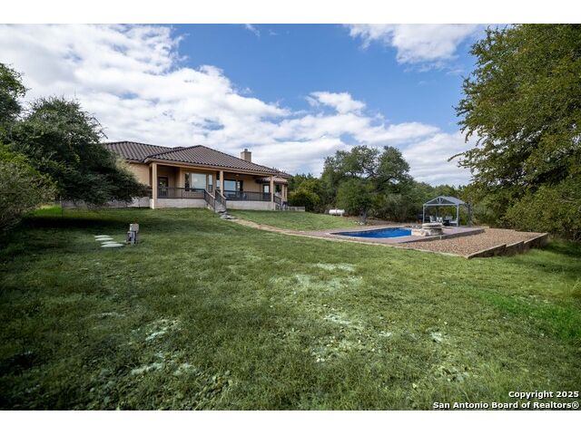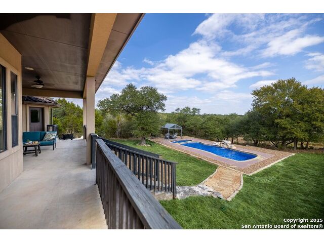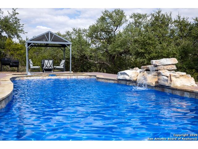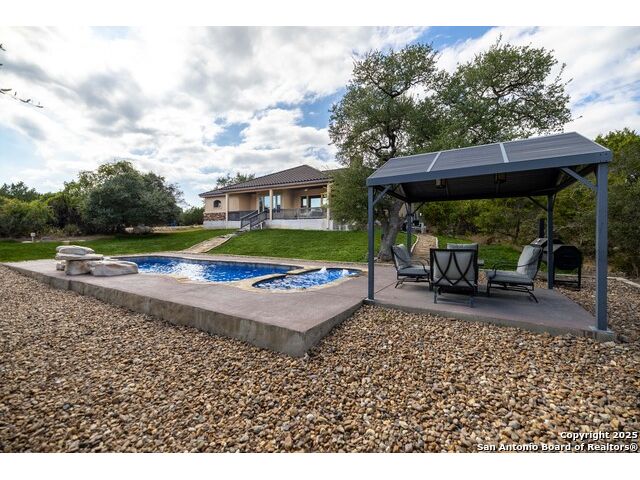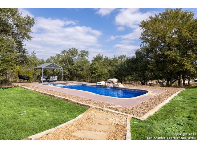 Welcome to River Chase, where Hill Country charm and neighborhood pride come together in one of New Braunfels' most coveted communities. Known for its private Guadalupe River access, 58-acre river park, and endless amenities-walking trails, sports courts, a clubhouse, and a sparkling community pool; River Chase offers a lifestyle that feels like vacation every day. Set on just over an acre, this 4-bedroom, 2.5-bath home was designed with space and comfort in mind. The heart of the home is the kitchen-a true standout with its expansive layout, granite countertops, gas cooking island, pot filler, double ovens, and walk-in pantry. There's no shortage of storage or prep space, and the breakfast area is perfectly placed to take in views of the backyard and pool. The living room is spacious, featuring tray ceilings, built-in shelving, and plenty of natural light. A separate dining room gives you the flexibility to host dinner parties or family gatherings. The primary suite is tucked away for privacy and includes direct patio access-ideal for a quiet morning coffee by the pool. The en-suite bath offers a walk-in shower, soaking tub, and dual vanities, creating a comfortable retreat at the end of the day. Out back, the a large pool and spa sit surrounded by mature trees, framed by an extended covered patio that's made for evening BBQs or lazy summer afternoons. With over an acre to enjoy, there's room for kids, pets, or even future additions-all in a setting that feels private yet connected. In River Chase, you're not just buying a home-you're joining a community that celebrates Hill Country living at its best, just minutes from Gruene, Canyon Lake, and everything New Braunfels has to offer!