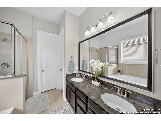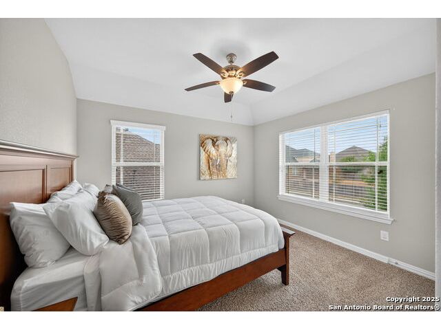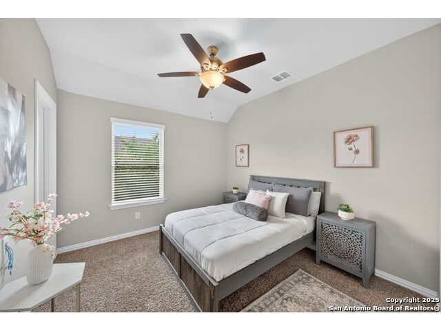 Some homes simply feel right the moment you walk through the door. This beautifully crafted residence combines warmth, sophistication, and everyday livability within a gated community known for its charm and amenities. Surrounded by mature trees and peaceful streets, it offers the kind of comfort that makes coming home the best part of your day. The floor plan was designed for both connection and privacy. The main living area flows effortlessly into the kitchen, creating a bright and open space for gatherings, quiet mornings, or nights spent by the fireplace. The chef's kitchen features a gas range, generous storage, and expansive counters that make cooking feel like a joy instead of a task. The primary suite rests on the first floor, creating a serene retreat away from the main living areas. Its spacious layout, spa-inspired finishes, and walk-in closet make it a true sanctuary. Near the entry, a flexible room offers the perfect space for a home office, study, or formal dining area-proof that function and beauty can coexist with ease. Upstairs, a large flex room provides endless possibilities. Whether used as a media room, game area, or guest space, it's designed to adapt to your lifestyle. Each secondary bedroom offers natural light and generous space, making every corner of this home feel inviting and practical. Step outside to your private backyard with no rear neighbors-a rare luxury that adds a sense of openness and peace. It's the perfect place for morning coffee, weekend barbecues, or stargazing under the Hill Country sky. A three-car garage and water softener complete the thoughtful touches that make daily life here both easy and elevated. The neighborhood enhances the experience even further, offering controlled access, a sparkling pool, tennis and sports courts, a playground, and scenic jogging trails. It's a community that feels active and alive, yet calm and private when you want to slow down. Convenience is another hallmark of this location. Within minutes, you'll find Alamo Ranch, La Cantera, and The Rim-three of San Antonio's most popular destinations for shopping and dining. Families enjoy access to highly rated Northside ISD schools, and commuters appreciate the easy reach of Lackland Air Force Base, Joint Base San Antonio, and major highways connecting to downtown. For recreation, golf courses, Hill Country trails, SeaWorld, and Six Flags Fiesta Texas are all nearby. Built in 2014 and lovingly maintained, this home embodies modern living with timeless design. It's a place that feels elegant yet approachable, private yet connected-a home where moments become memories and every detail reflects care and comfort. Schedule your private showing and discover the lifestyle that awaits in this exceptional San Antonio community.