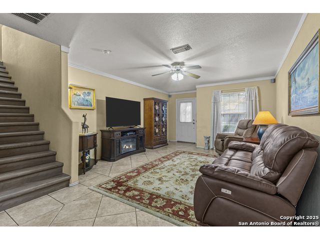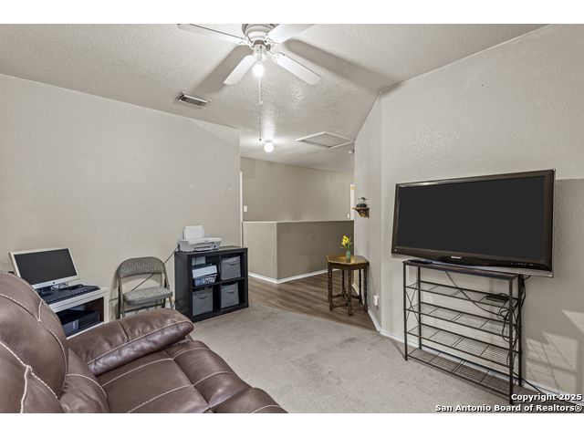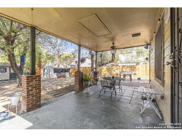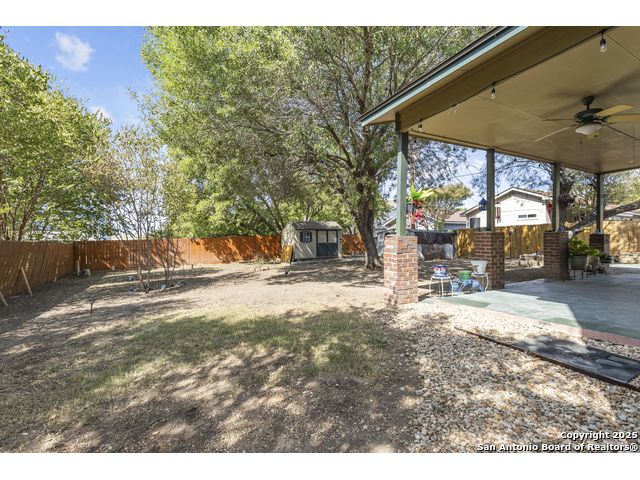 Welcome to 8255 April in San Antonio, Texas. This beautiful two-story home features 3 bedrooms and 2.5 bathrooms with an open floor plan that connects the living room, dining area, and kitchen. The spacious kitchen offers plenty of cabinet and countertop space along with stainless steel appliances, making it perfect for cooking and entertaining. Upstairs you'll find a large master bedroom with a full bathroom and a comfortable loft area that can be used as a game room, office, or additional living space. The secondary bedrooms are nicely sized and share a well-maintained bathroom. Outside, enjoy an extended covered patio overlooking a large backyard that includes two storage sheds for extra convenience. The roof was replaced just two years ago, providing peace of mind for years to come. This home provides a comfortable layout with practical design and great storage throughout. Close to daily conveniences, this home places you near good schools, shopping, dining, and quick access to major routes for commuting or weekend escapes. All told, this is the kind of move-in-ready home that blends comfort, functionality, and value in one of San Antonio's desirable neighborhoods.