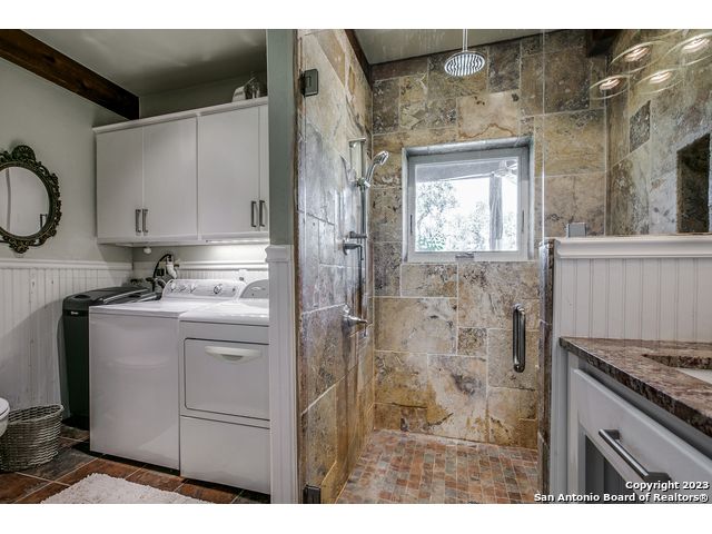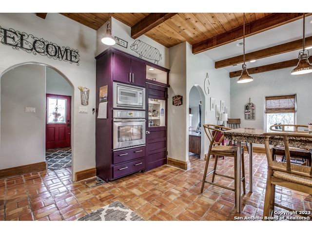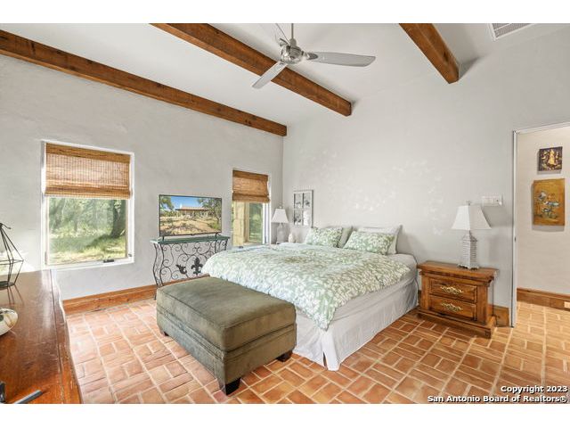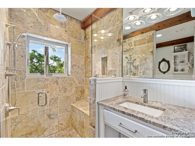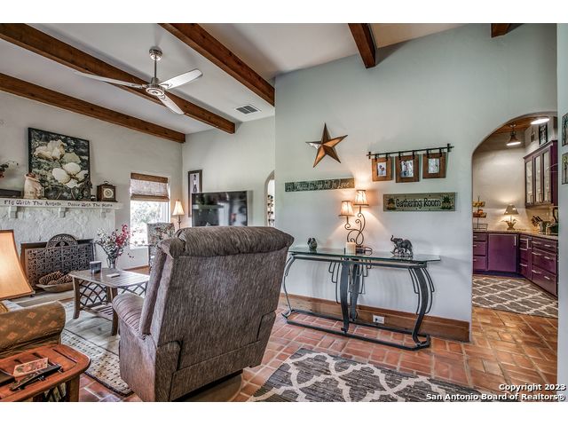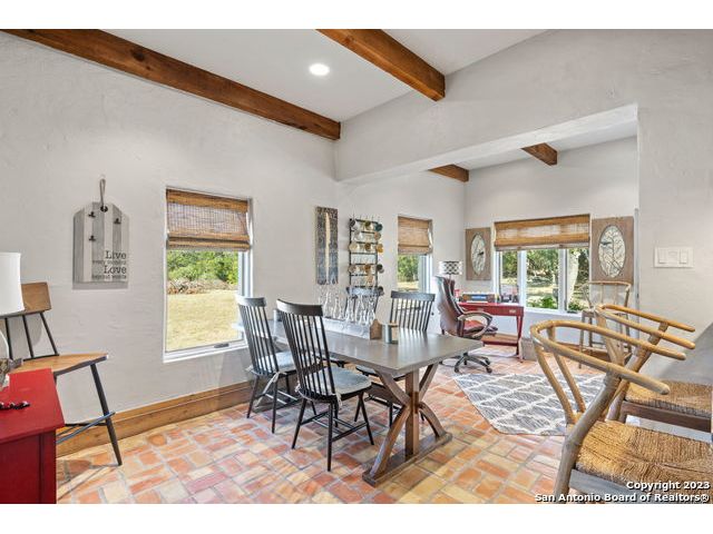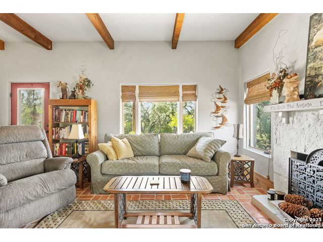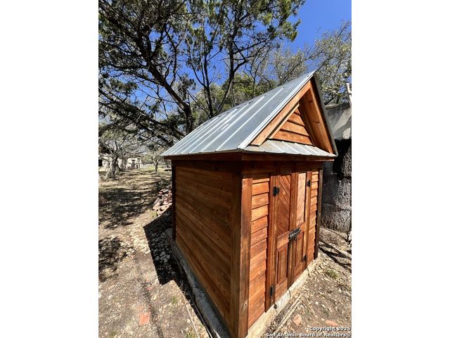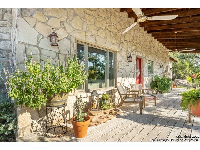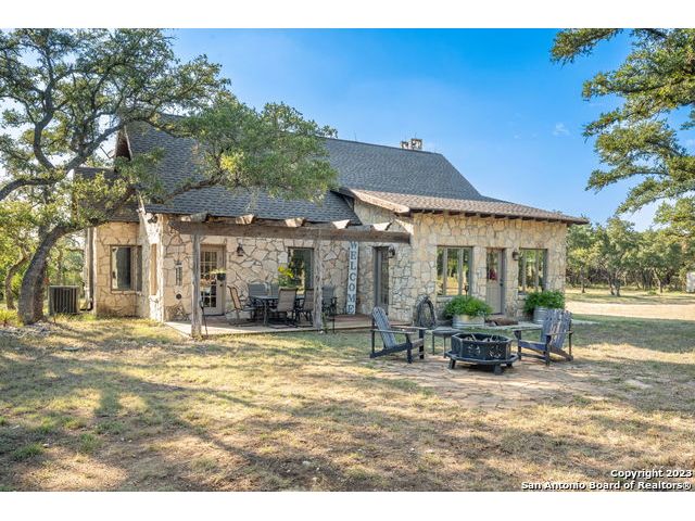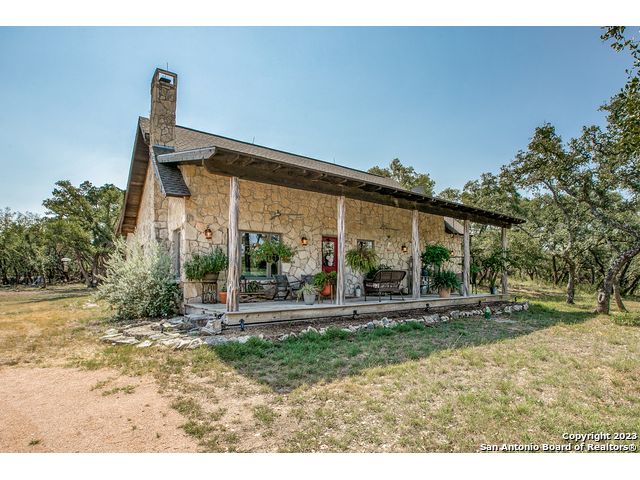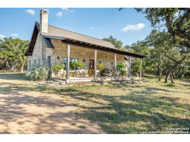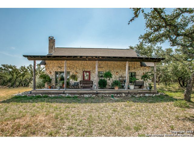 Don't miss this rare opportunity to own a secluded, one-of-a-kind piece of Texas history! This beautifully preserved solid rock home, originally built around 1850, sits tucked away on just under 3 acres of private & unrestricted land with it's own septic system and private water well over 600' deep offering unmatched freedom to live, build, and create, without HOA rules, zoning restrictions, or crowded neighborhoods. Step inside this charming 2-bedroom, 1-bathroom home, fully remodeled in 2014 with All new plumbing, new roof, new windows, raised ceilings & updated fixtures & finishes throughout. With approx. 1,100 sq ft of durable construction and a fully decked attic ready to finish, the potential is limitless. Relax on the expansive 20-foot-long front porch, perfect for morning coffee, evening sunsets, and watching wildlife roam freely - all in total privacy. Great location for a venue, right across from Canterra Hills community. Build additional homes or cottages -ideal for a multi-generational compound or income-producing rentals. Expand the home upward or outward - no HOA, no restrictions. Separate cabin can serve as a home office, yoga studio, creative space, or kids hangout. 10 minutes from The Rim, The Shops At La Cantera & I-10.